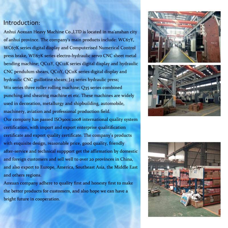 Основная конфигурация-импортная Высококачественная продукция, а профессиональная команда контроля качества продукции обеспечивает высокое качество, точность и срок службы машины. Например, Германия Bosch-Rexroth Клапанная группа, Германия Siemens главный двигатель, Schneider электрика системы и так далее. После того, как наша машина будет протестирована как квалифицированная, она будет отправлена. Поэтому качество нашей продукции является стабильным и надежным.