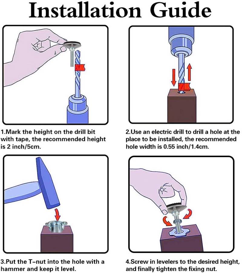 Шаг 4: Установите нивелирующую стопу и затяните гайки