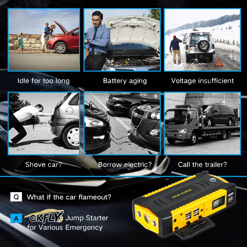 Быстрый запуск 12V бензиновый автомобиль (до 5.0L) и дизельный автомобиль (до 3.0L) за считанные секунды в тех случаях, когда автомобильного аккумулятора. Когда вы путешествуете в небольшом месте, и ваш автомобильный аккумулятор не работает, вы можете использовать этот автомобильный стартер для запуска вашего автомобиля.