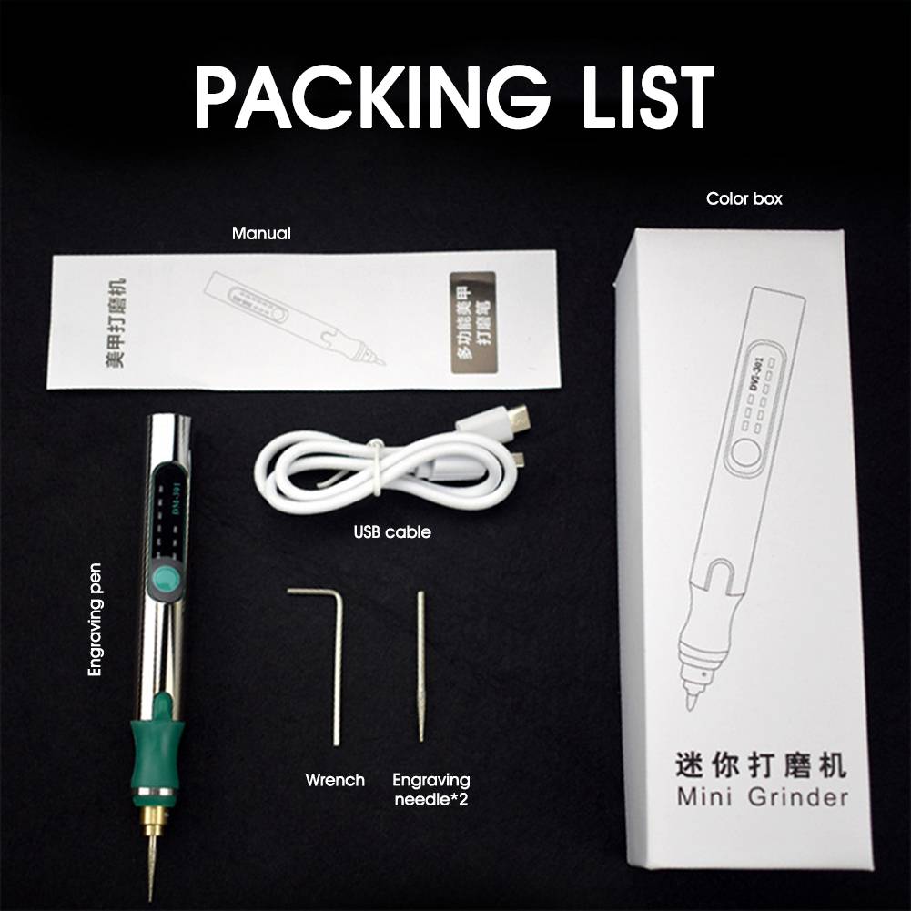 * 3. Универсальная зарядка через USB, удобная беспроводная ручка для гравировки.