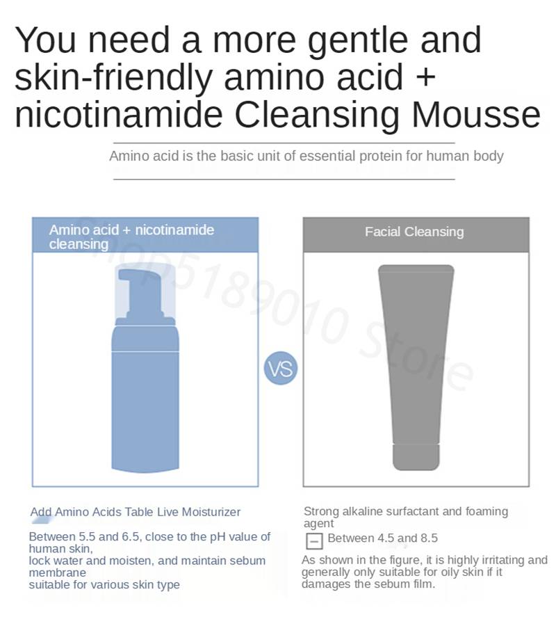 Очищающий мусс с аминокислотами, увлажняющий контроль жирности, Глубокая очистка, очищающая пена для лица, осветляющая цвет кожи, средства по уходу за кожей