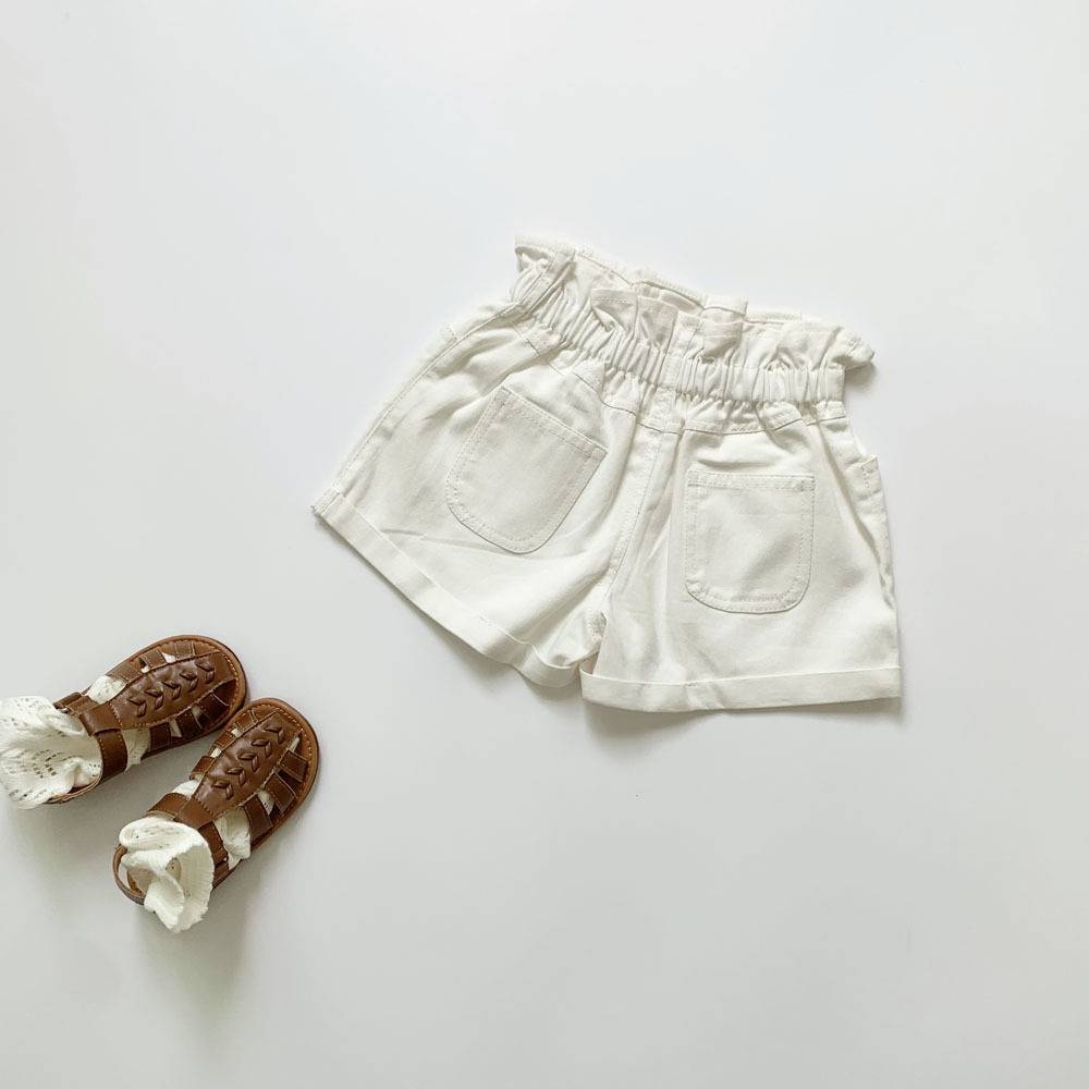 Кружевные эластичные джинсовые шорты с оборками на талии для девочек; Летние детские короткие штаны; Джинсовая одежда для маленьких девочек; Дизайнерские штаны с карманами для детей