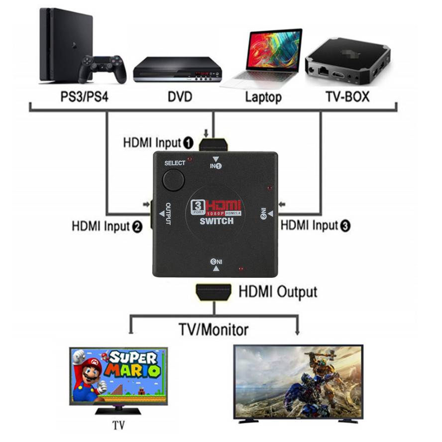 Этот вид HDMI этот тип Усилителя HDMI mini Switcher передает видео высокой четкости (в разрешении multipl до 1080p) и цифровое аудио от любого из нескольких источников для отображения единиц. Все входы поддерживают соединения видеоисточников высокой четкости, которые одновременно совместимы с HD-DVD SKY-STB для PS3 для Xbox 360 и т. Д. Выход отправляет аудио/видео сигналы высокой четкости на дисплей высокой четкости.