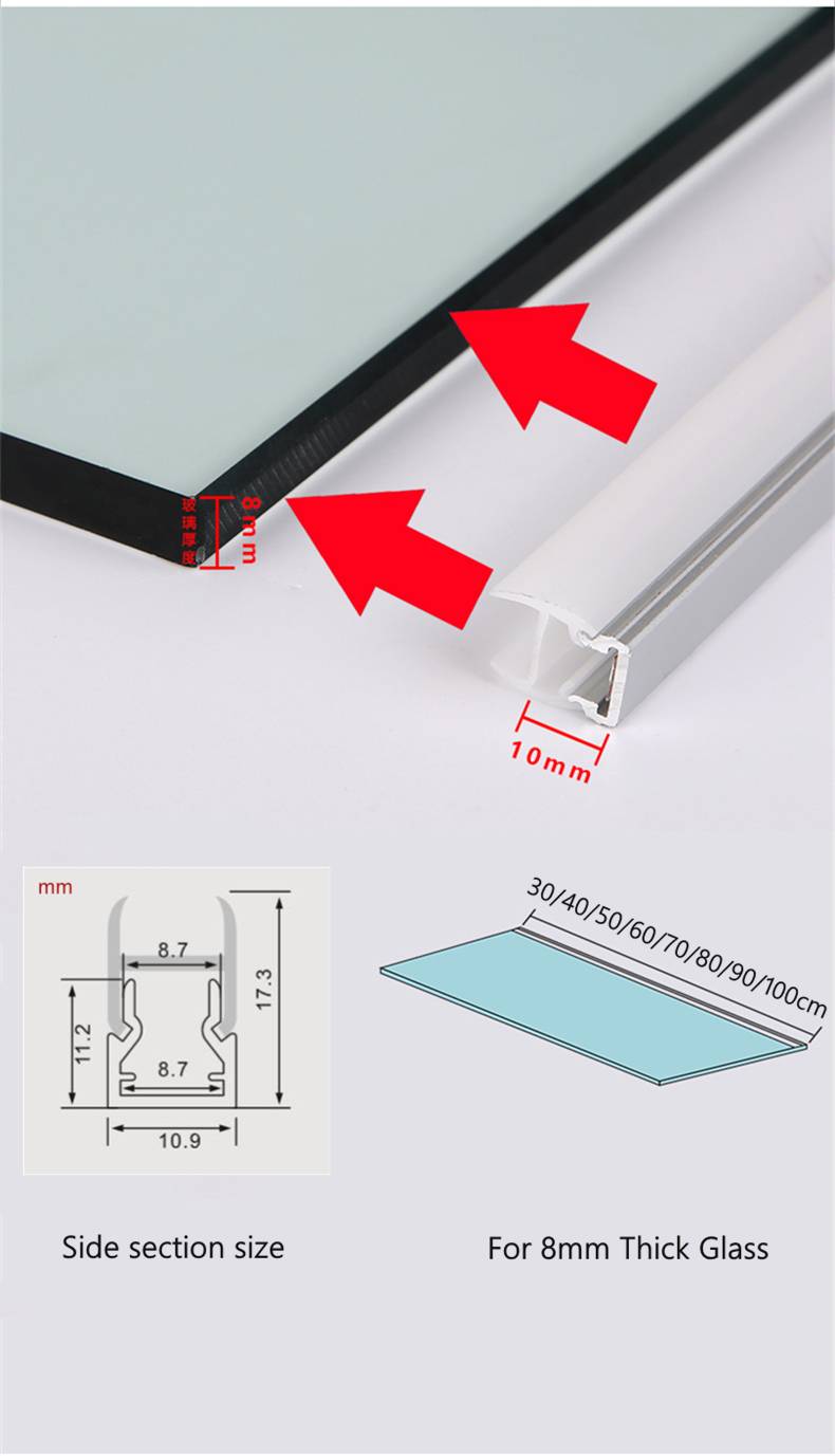 8 мм светодиодный светильник для шкафа, стеклянная полка, шина, зажим, лампа, витрина для ликера, задняя сторона, дисплей, алюминиевая полоса, светильник, датчик затемнения