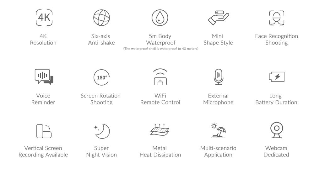 Вариант 7: пройденное расстояние стандарт + ремень на голову + нагрудный ремень + J крючок + крепление машинный держатель + насадка для зарядки от прикуривателя автомобиля + Поплавок + 12 x Анти-туман plug + 64 Гб U3 слот для карт памяти + сумка для переноски (Размер: 22x17x6 см);