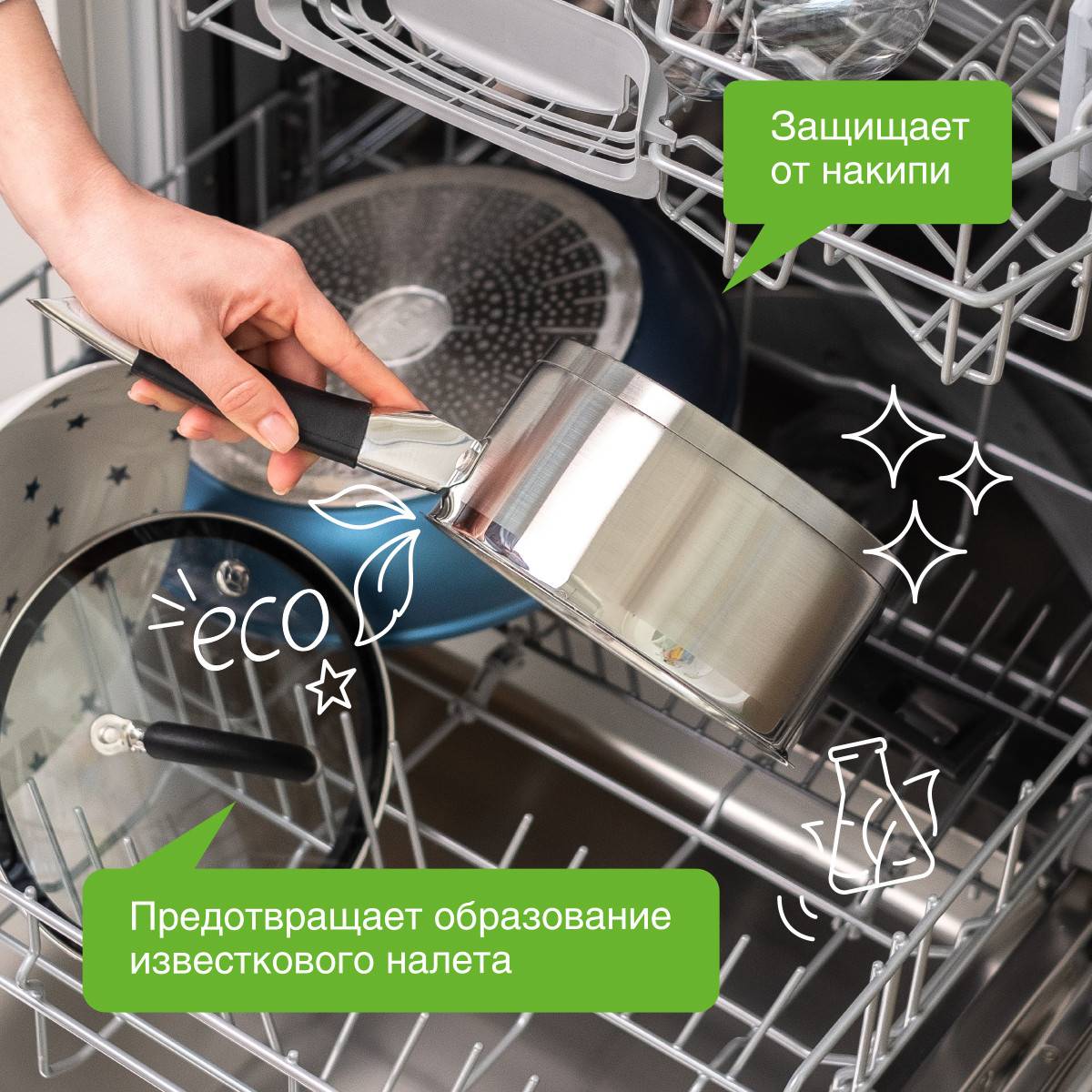 Соль высокой степени очистки для посудомоечной машины Синергия улучшает работу посудомоечной машины, смягчает воду и защищает от накипи ее элементов, предотвращает образование известкового покрытия и обеспечивает комфортное состояние.