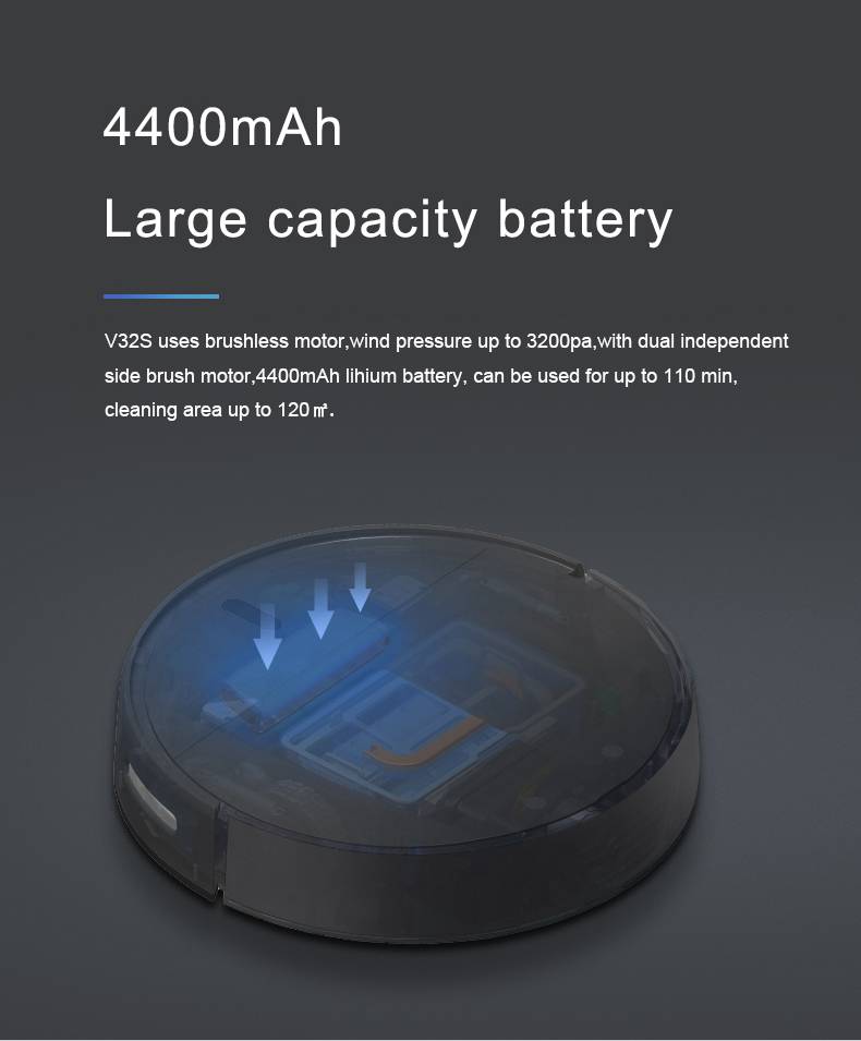 Аккумулятор большой емкости 4400 мАч делает чистку более долговечной.