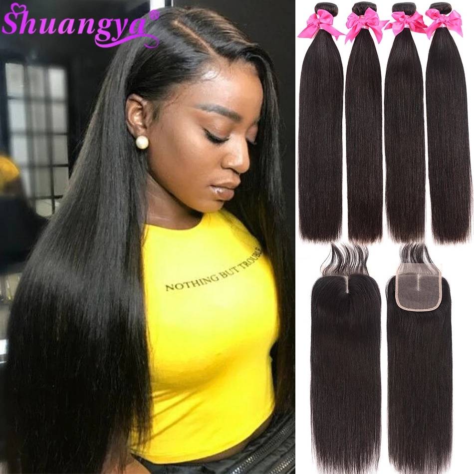Shuangya волосы индийские прямые пучки с фронтальной 100% Remy человеческие волосы пучки с закрытием высокое качество пучки с закрытием