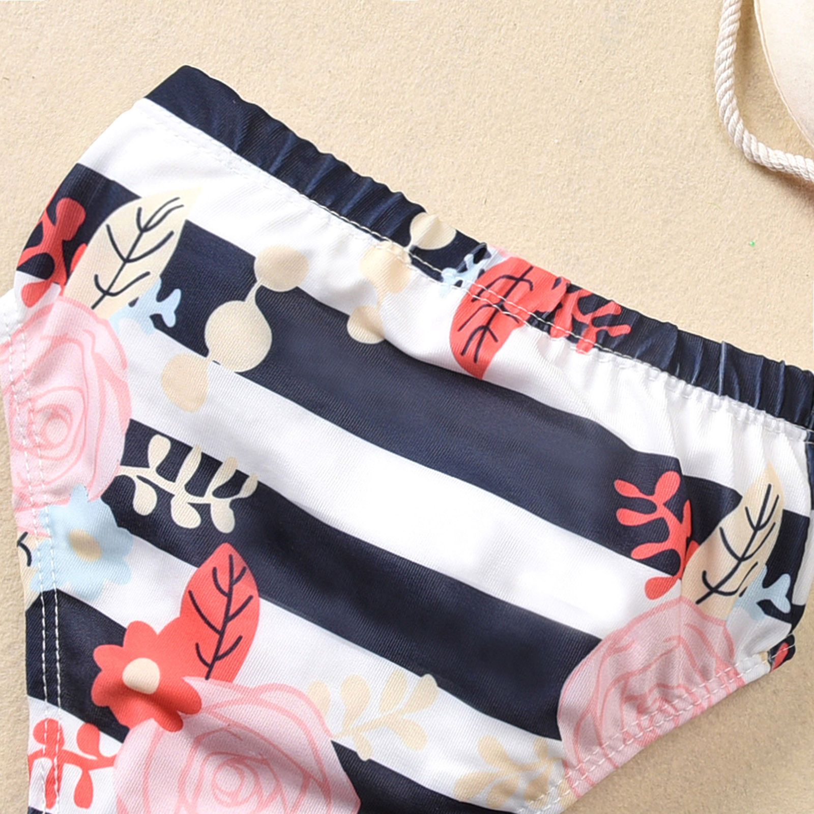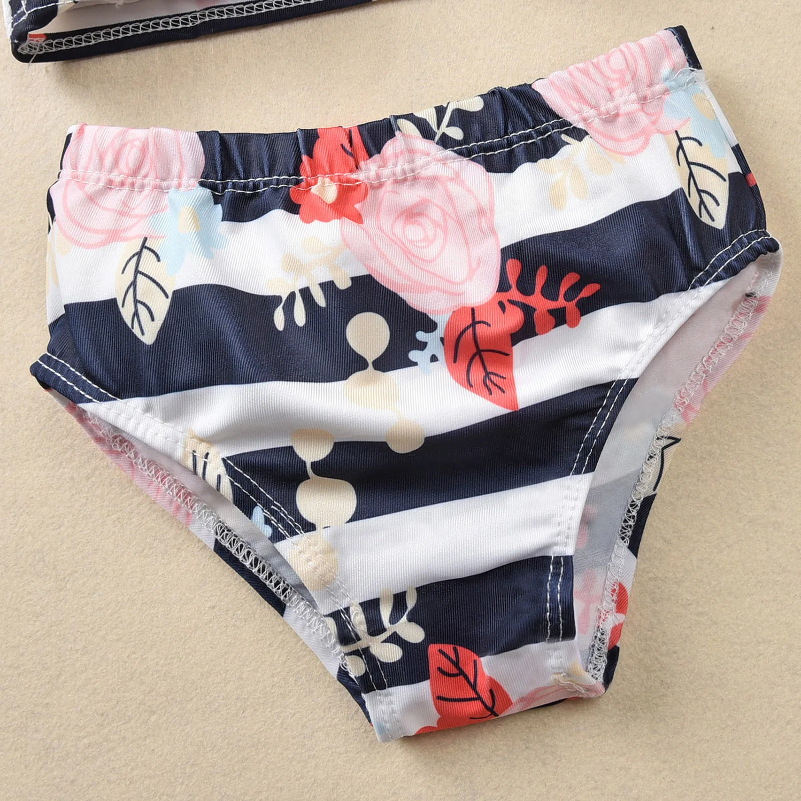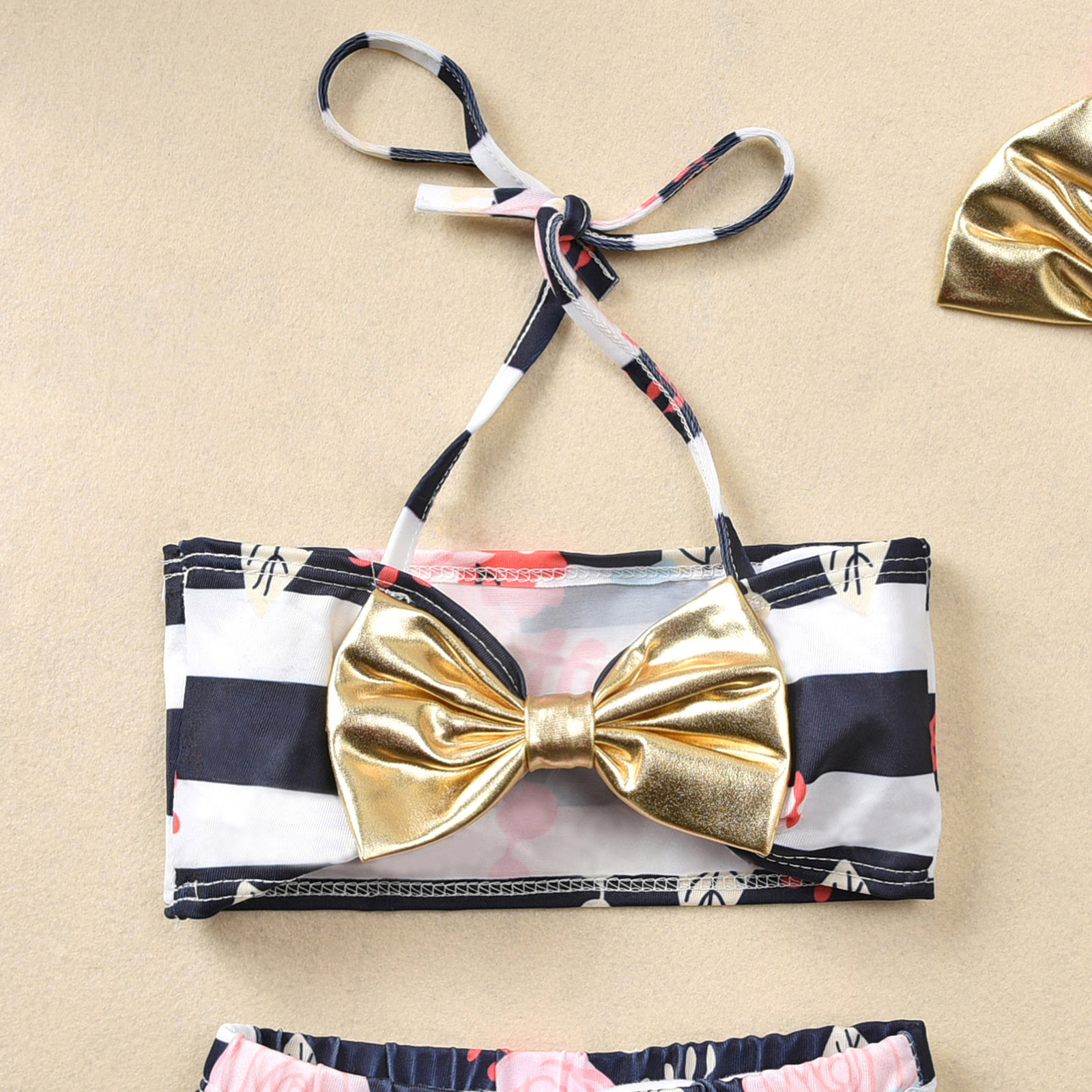 Купальный костюм из трех предметов для маленьких девочек; Пляжный купальный костюм в полоску с бантом и цветочным принтом