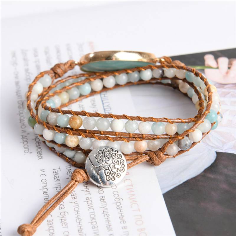 Кожаный браслет с бусинами, плетение из смешанных камней, эффектный браслет Boho Femme, ювелирные изделия, оптовая продажа