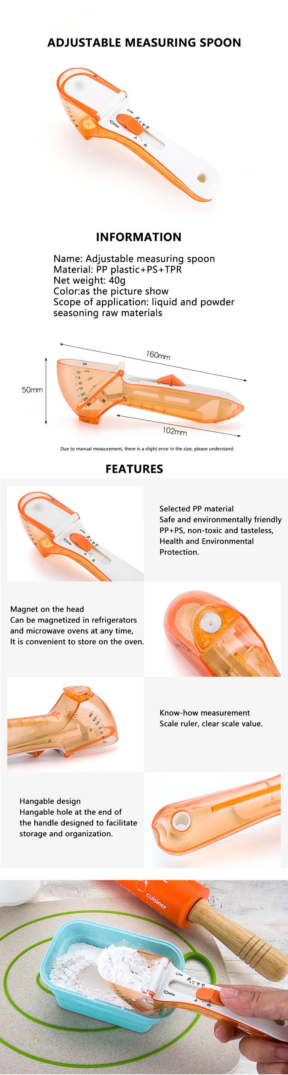 Регулируемая мерная ложка со шкалой, Аксессуары для выпечки, кухонные измерительные инструменты, приправа, ложка, Пластиковые мерные ложки