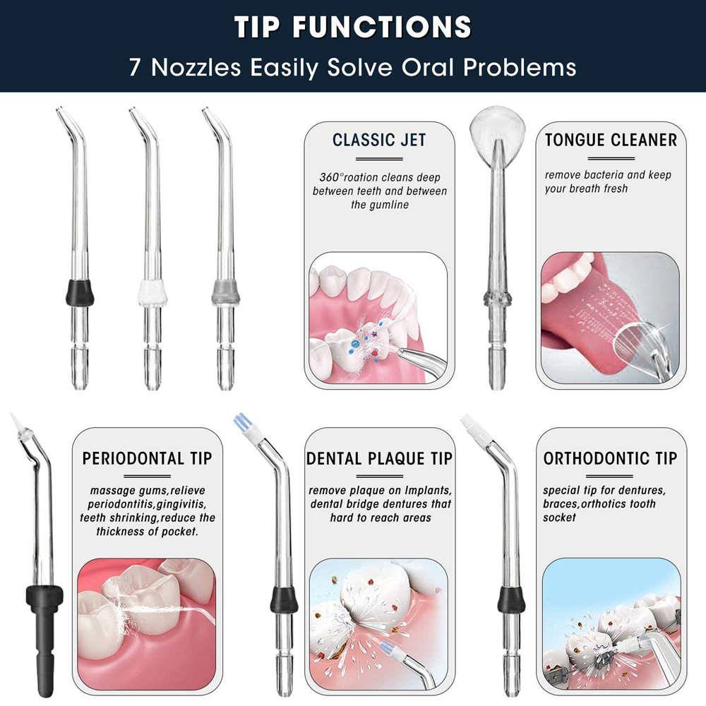 Зубная вода очиститель зубов-Nicefeel FC162 Высокочастотный импульсный водный Электрический ирригатор полости рта с 7 взаимозаменяемыми насадками для брекетов, имплантатов, мостов, 600 мл большой емкости черный