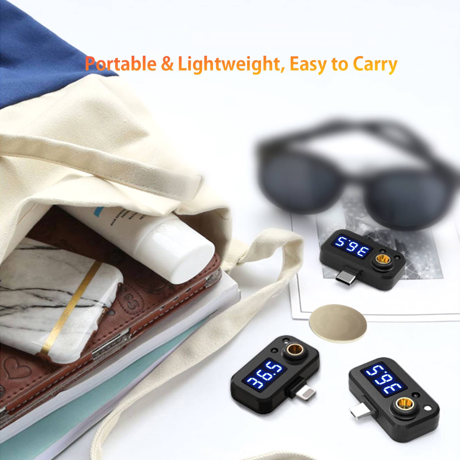 Компактный и мини-размер, портативный, чтобы носить с собой. Не нужны батареи, удобнее, чем ручные термометры.