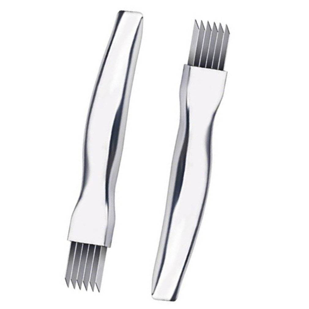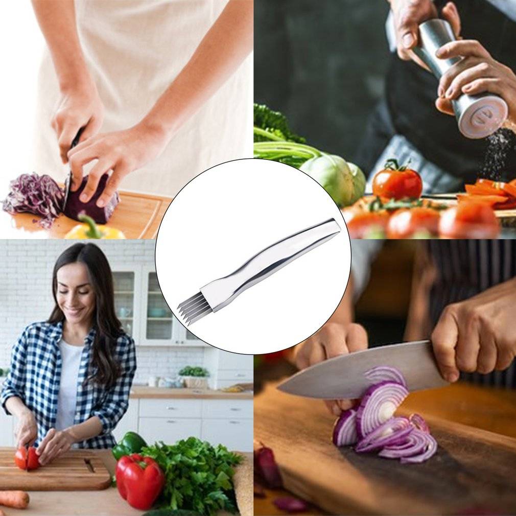 1. Простота в использовании: кухонные ножи или решетки с отверстиями могут повредить пальцы. Этот зеленый нож для лука с ручкой очень безопасен и прост в использовании. Просто вставьте ломтерезку для лука вертикально в овощи и аккуратно вставьте овощи в тонкие ломтики.