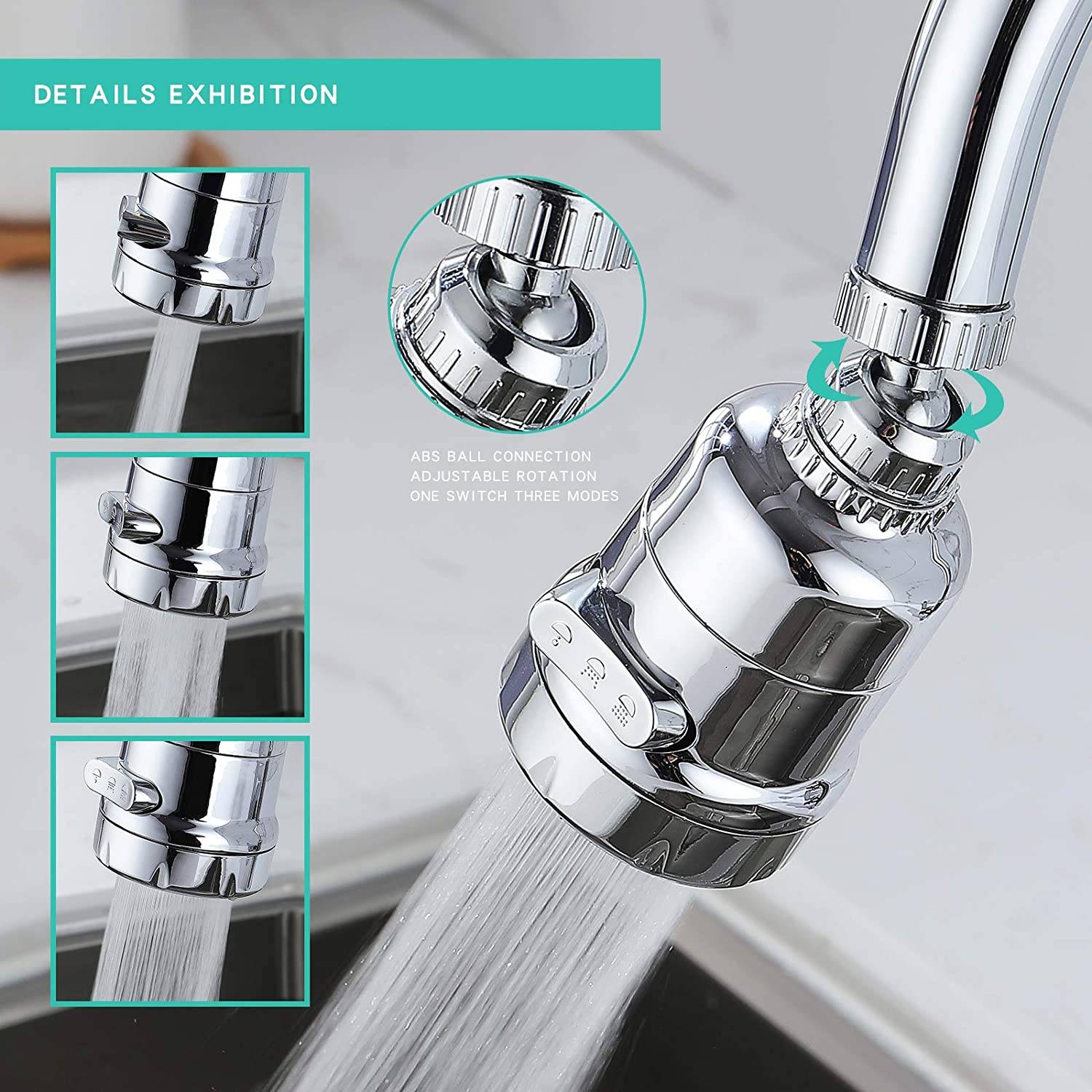 ● 【 Три режима для экономии воды: головка водопроводного крана поставляется с 3 различными настройками распыления (душ, плюс, плюс + душ). Различное давление воды может регулироваться в соответствии с вашими потребностями. Регулируемый шарнирный шаровой шарнир позволяет легко изменить угол головки смесителя.