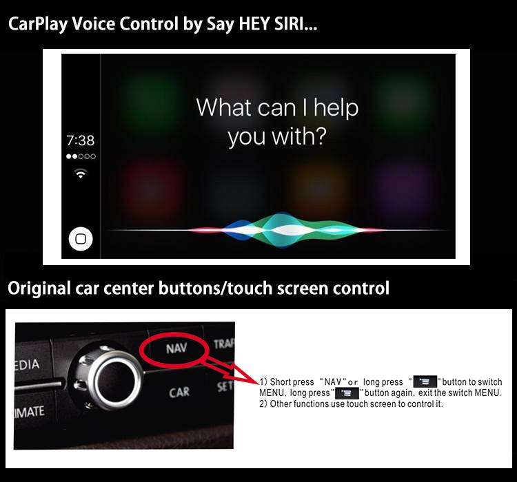 Это модуль, работает на оригинальном заводском экране автомобиля, нет необходимости менять экран.✅Беспроводная и проводная Apple CarPlay.✅Беспроводной/проводной Android авто, (беспроводной Android авто в зависимости от мобильный телефон).✅Проводная функция зеркального отображения экрана для телефонов iPhone и Android.✅Сохраните оригинальную автомобильную систему, систему продуктов и оригинальную автомобильную систему, свободно переключаемую.✅Кодирование не требуется.✅С динамическими инструкциями по парковке, двигаясь на рулевом колесе.✅Совместим с оригинальными камерами заднего и Переднего Вида, если оригинальная автомобильная Встроенная камера 360, в системе продукта только поддержка задней камеры, ничто не влияет на оригинальную автомобильную систему.✅Поддержка добавления задней и передней камер.✅Беспроводное подключение через WIFI и Bluetooth.✅Проводное подключение через usb-кабель, usb-кабель не имеет функции зарядки.✅Используйте ваши любимые телефонные приложения для gps-навигации Apple Maps, Google Maps и Waze и получайте уведомления о живом движении✅Позволяет осуществлять звонки и обмен сообщениями в режиме громкой связи.✅Голосовое управление CarPlay через Siri.✅Воспроизводите музыку с ваших любимых телефонных приложений, Spotify, Apple music, Amazon.✅USB порт в комплекте может также принимать USB флэш-накопитель для воспроизведения музыки и видео.