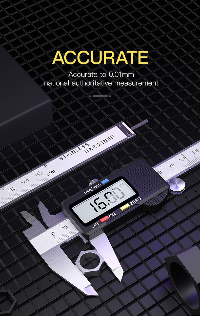 1. штангенциркуль с цифровым дисплеем, профессиональное измерение, точное и прочное, стабильное считывание. 2. Доступны четыре модели: 0-100 мм, 0-150 мм, 0-200 мм, 0-300 мм 3. Точность до 0,01 мм, авторитетные измерения и испытания, гарантия качества и точности 4. Два вида списка измерений: один ключевой переключатель метрических/британских измерений 5. Показания высокой четкости: ЖК-дисплей с большим экраном высокой четкости, четкие и точные показания 6. Увеличенная литиевая батарея, Низкое энергопотребление, длительное время автономной работы 7. Стопорная Гайка: данные измерения замка 8. Корпус из нержавеющей стали: антикоррозийный, антикоррозийный и устойчивый к падению 9. Технология происхождения: возврат к нулю в любой позиции