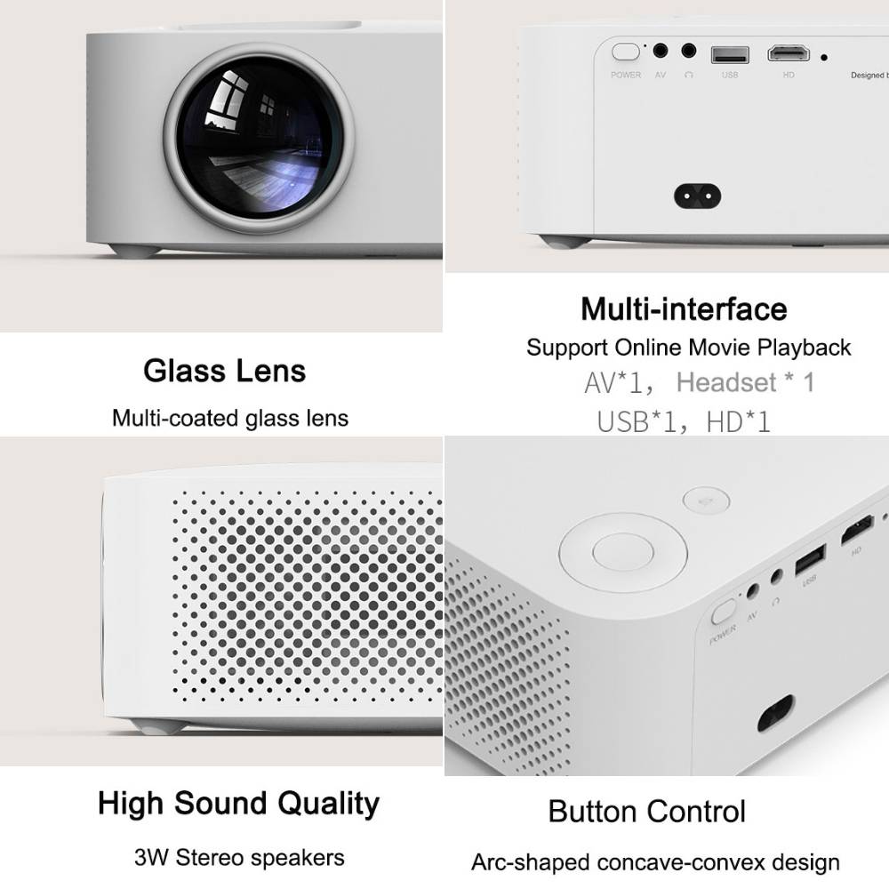 Глобальная версия Wanbo X1 OSD проектор 1080P LCD Прозрачная проекция стеклянная линза с низким уровнем шума Беспроводная проекция с AV/Аудио/HDMI/USB портами Keystone коррекция домашнего кинотеатра совместима с iOS/Android