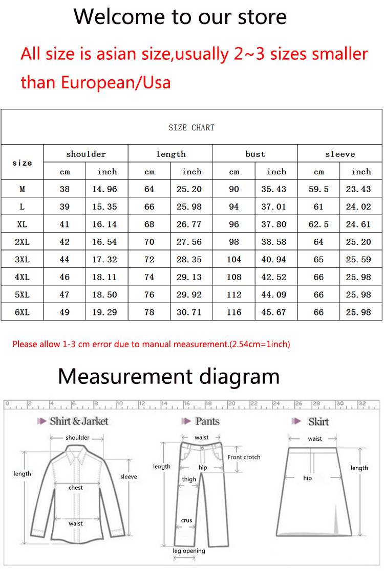 Европейский/американский размер S = Азиатский размер L Европейский/американский размер M = Азиатский размер XL Европейский/американский размер L = Азиатский Размер 2XL Европейский/американский размер XL = Азиатский Размер 3XL Европейский/американский Размер 2XL = Азиатский Размер 4XL европейский/американский Размер 3XL = Азиатский Размер 5XL Европейский/американский размер 4XL = Азиатский Размер 6XL
