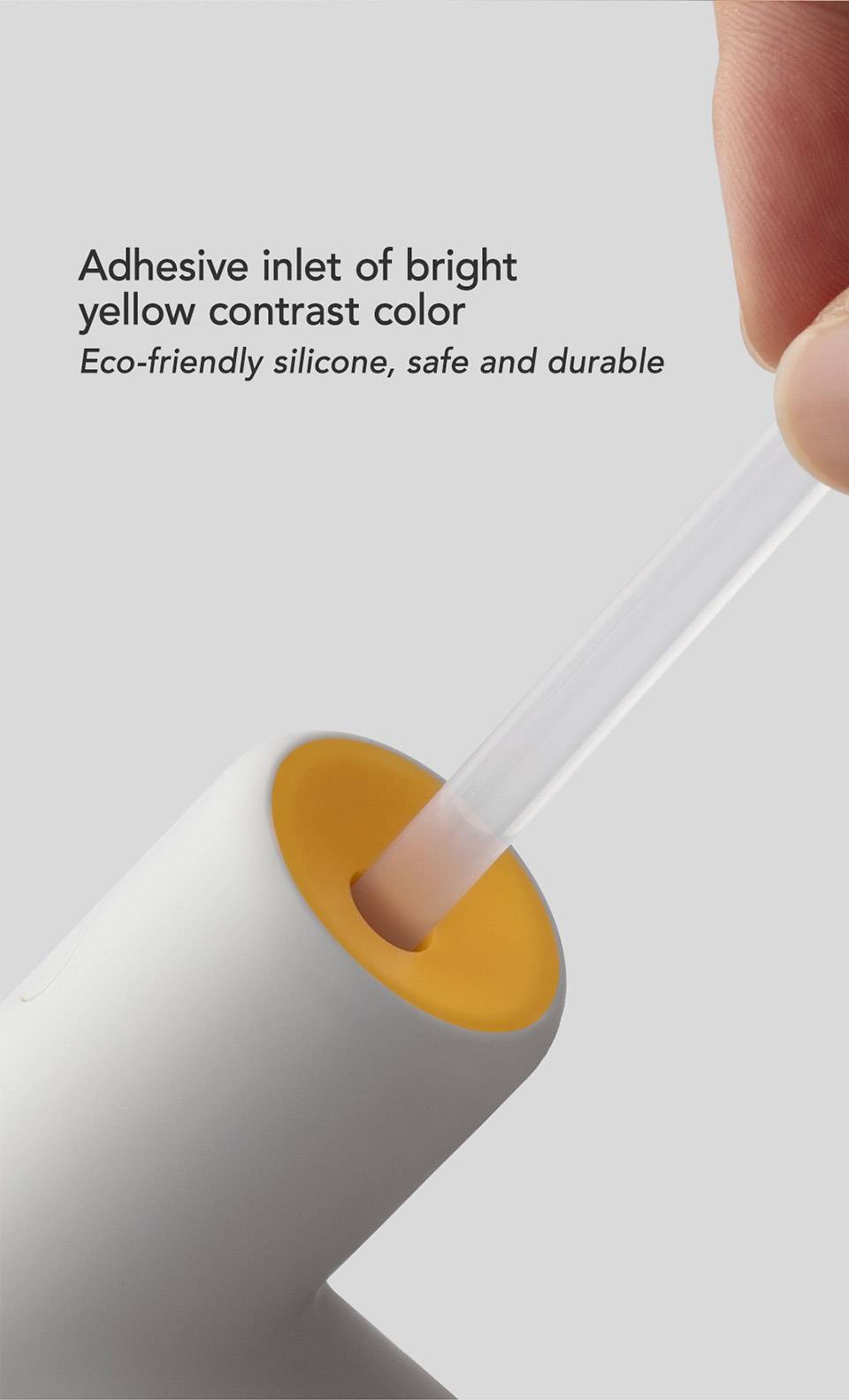 На клейком входе в хвосте пистолета применяется экологически чистый силиконовый материал, который является безопасным, прочным и эластичным, чтобы носить шляпу, может привести к оттоку клея. Яркий желтый контрастный цвет вдохновляет вас на создание.