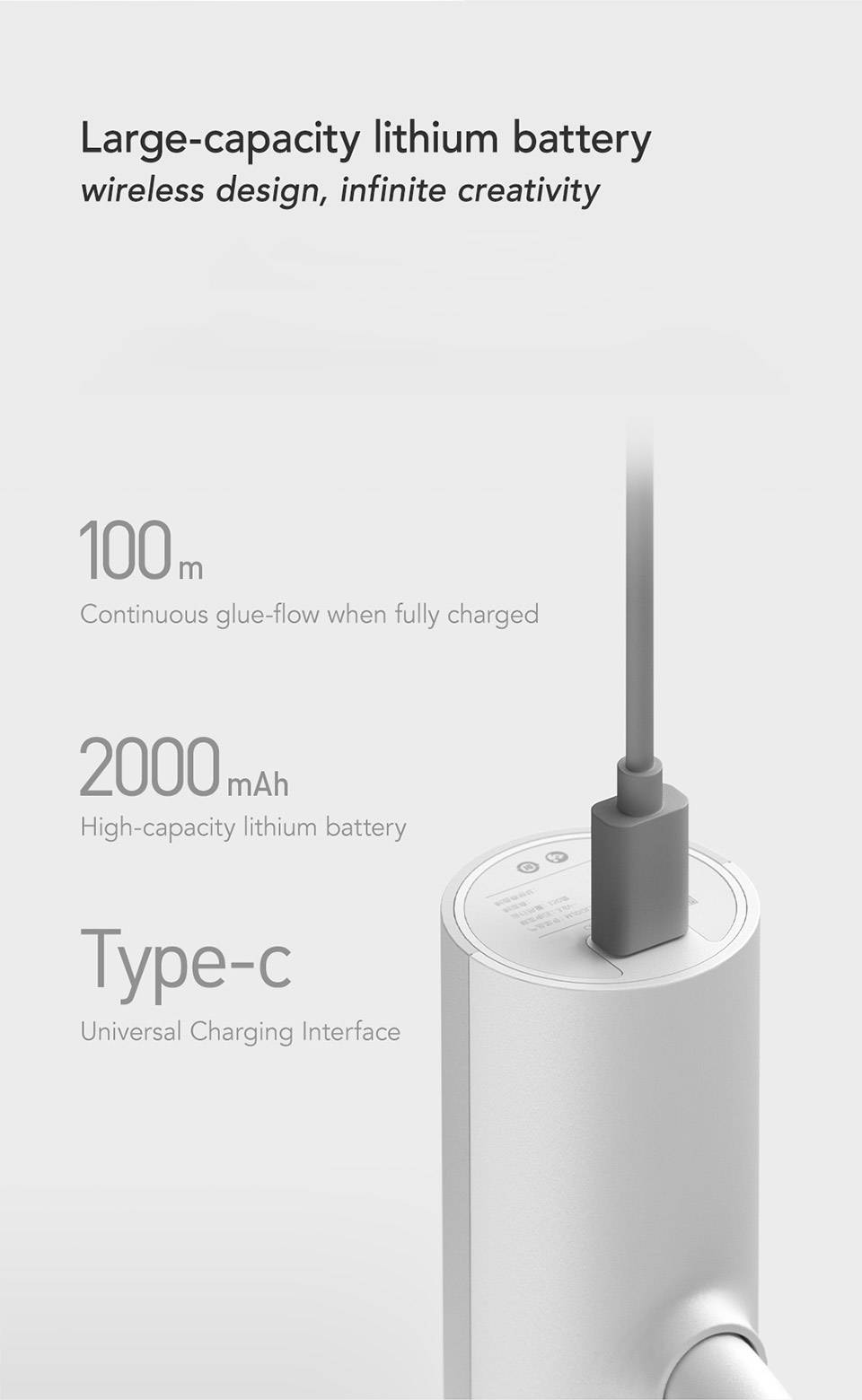 Встроенный повышенной емкости 2000 мАч литиевая батарея: около 100 того, что наши производственные мощности включают в непрерывной оттоку клея при достижении уровня полной зарядки станет гореть. Универсальный зарядный интерфейс Type-C: быстрая зарядка в любое время и в любом месте.