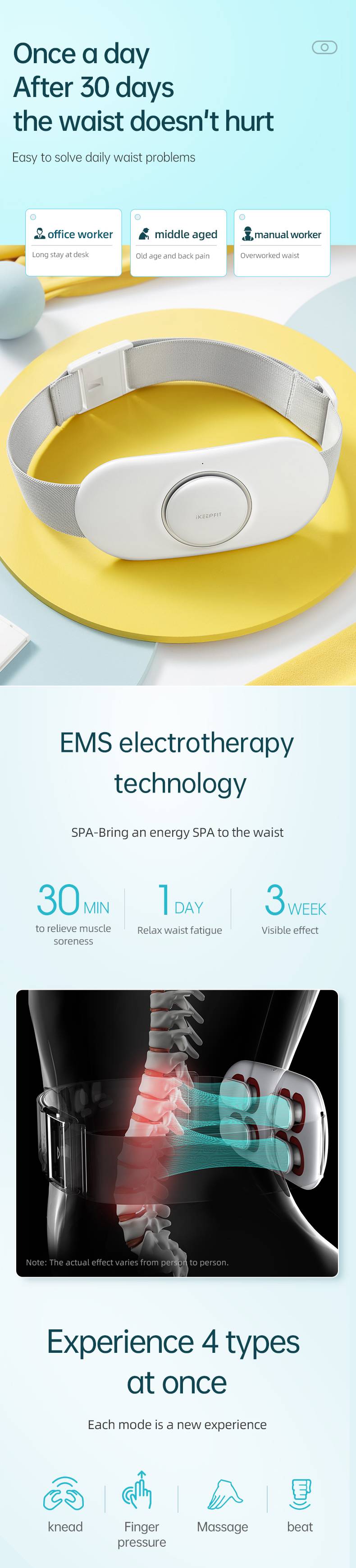 1. Автоматическое время в течение 15 минут, вы увидите заметные эффекты в течение 3 недель aa. Вы настаиваете на ношении один раз в день, больше нет боли в талии;