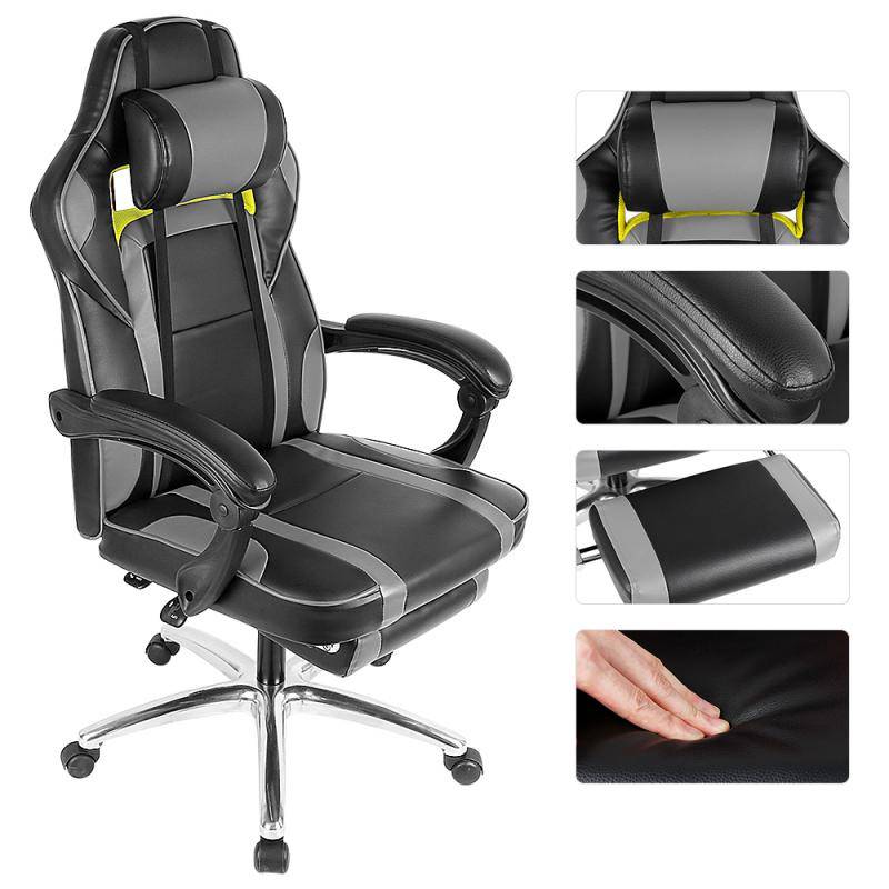 Ножка из алюминиевого сплаваРазмер 69x71,5x114-123,5 смШирина стула: 66,5 смУгол регулировки спинки: 90-175 °Высота стула: 116-123,5 смШирина сиденья: 56 смГлубина сиденья: 52 смВысота сиденья: 45-54 смШирина спинки: 55 смВысота спинки: 74,5 смШирина основания: 69 смВес нетто: 19,8 кгНеобходимо уметь регулировать параметры сиденья, чтобы адаптировать его к потребностям каждого. Этот стул позволяет регулировать высоту, вы можете отодвинуть назад. Кроме того, его можно поворачивать на 360 градусов, тем самым улучшая движение на работе. Наконец, 5 двойных колес могут скользить по земле. Эти детали и другие особенности делают его очень удобным и прочным.Вес подшипника: 120 кгИдеально подходит для работы/игры: этот стул В гоночном стиле имеет спинку, сиденье, подлокотники и подголовник, которые могут обеспечить комфорт во время учебы, работы или игр в видеоигрыОтличный дизайн и эргономика: с отделкой из синтетической кожи, черной и красной отделкой, регулируемой по высоте и рычагами под сиденьем, этот офисный стул подходит для разных пользователейНаклон спинки: вы можете зафиксировать спинку в вертикальном положении (90 градусов); Используйте рычаг под сиденьем, чтобы разблокировать это положение и наклонить его до 175 градусовГибкий: конструкция офисного стула обеспечивает вращение на 360 градусов, а система подъема давления воздуха может регулировать высоту
