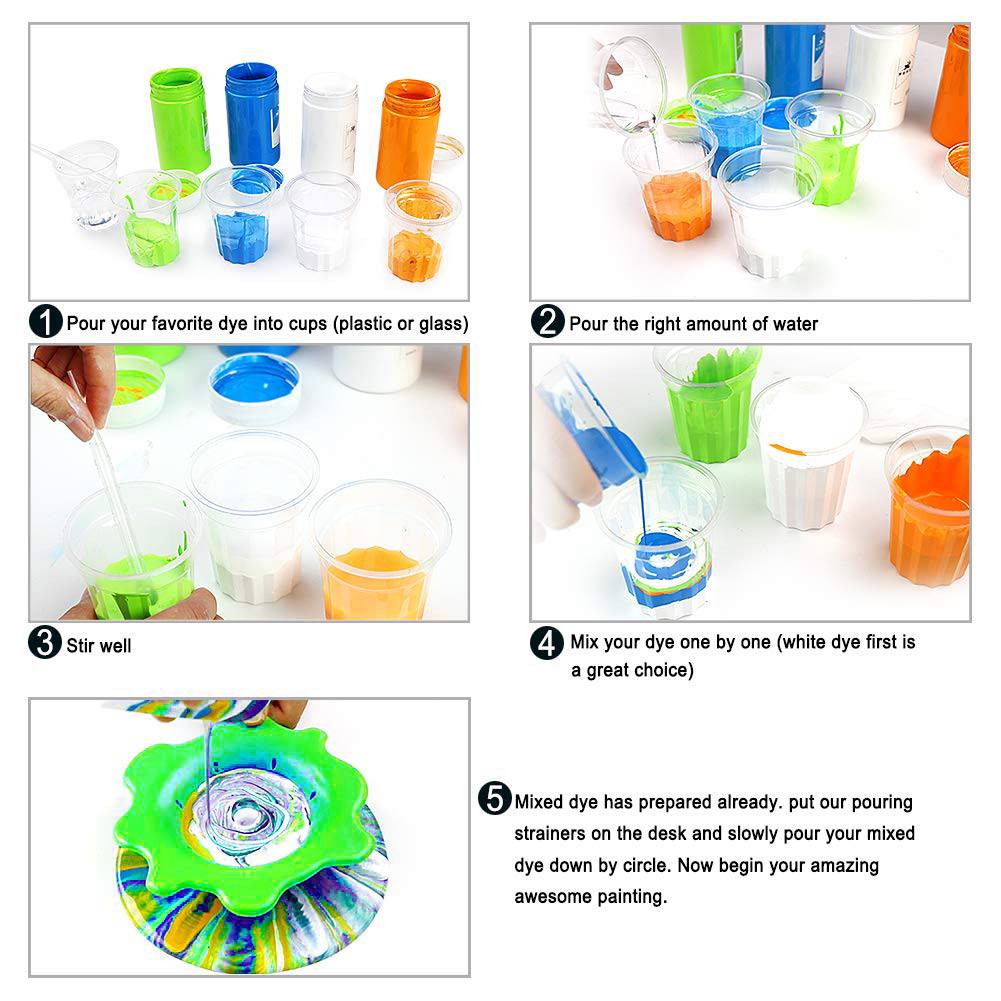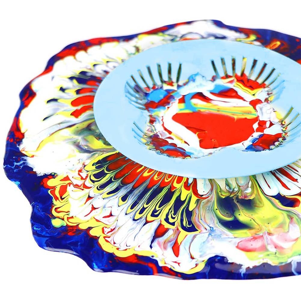 4. Смешанный краситель уже приготовил, Положите наши наливные ситечко на стол и медленно Налейте ваш смешанный краситель по кругу. Теперь начните свою удивительную картину.