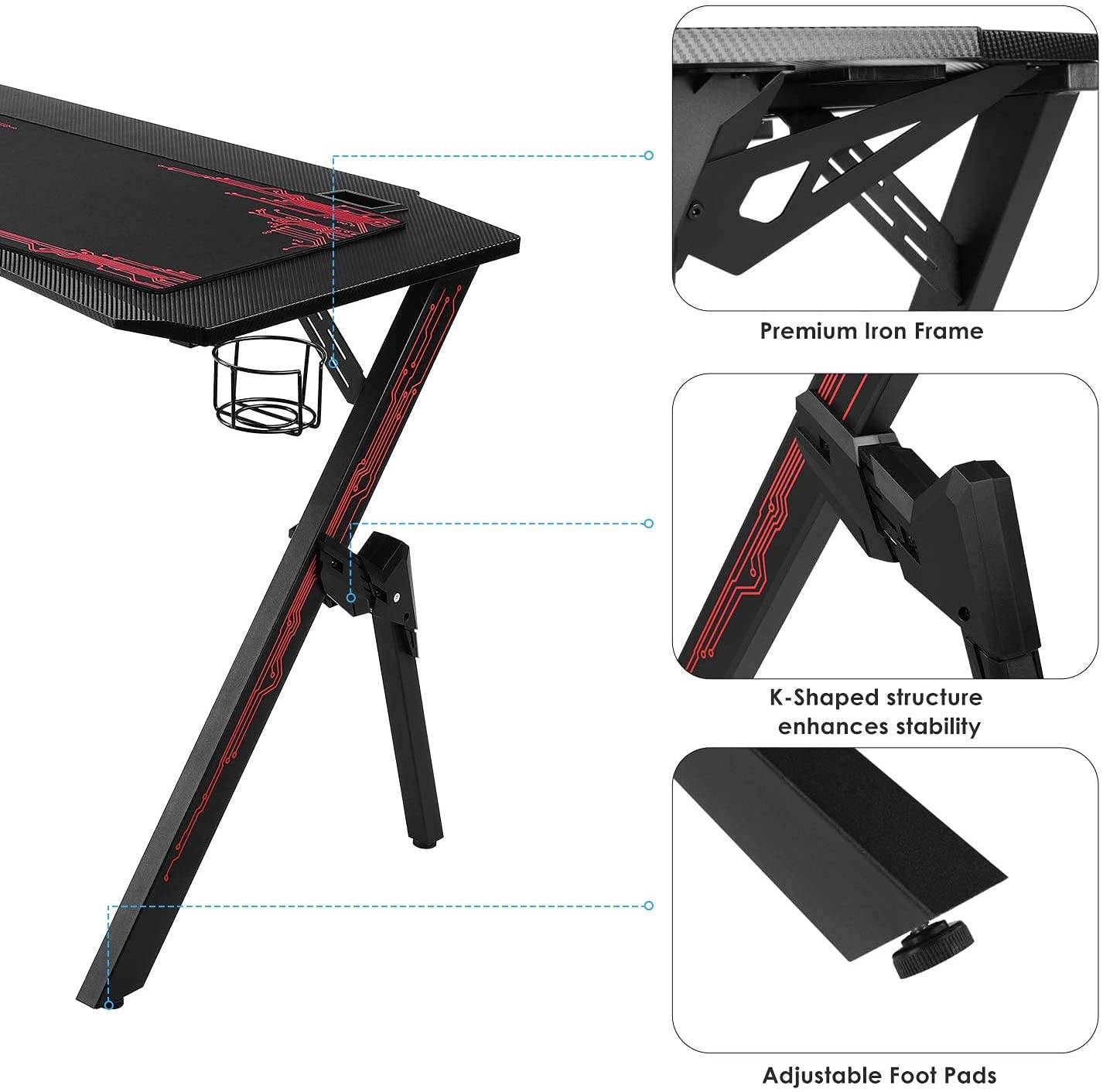 Игровой стол Homfa эргономичный компьютерный стол k-образный игровой стол игровая рабочая станция для геймеров с коврик для мыши, подстаканник, подставка для контроллера и крюк для наушников 110x55x75cm