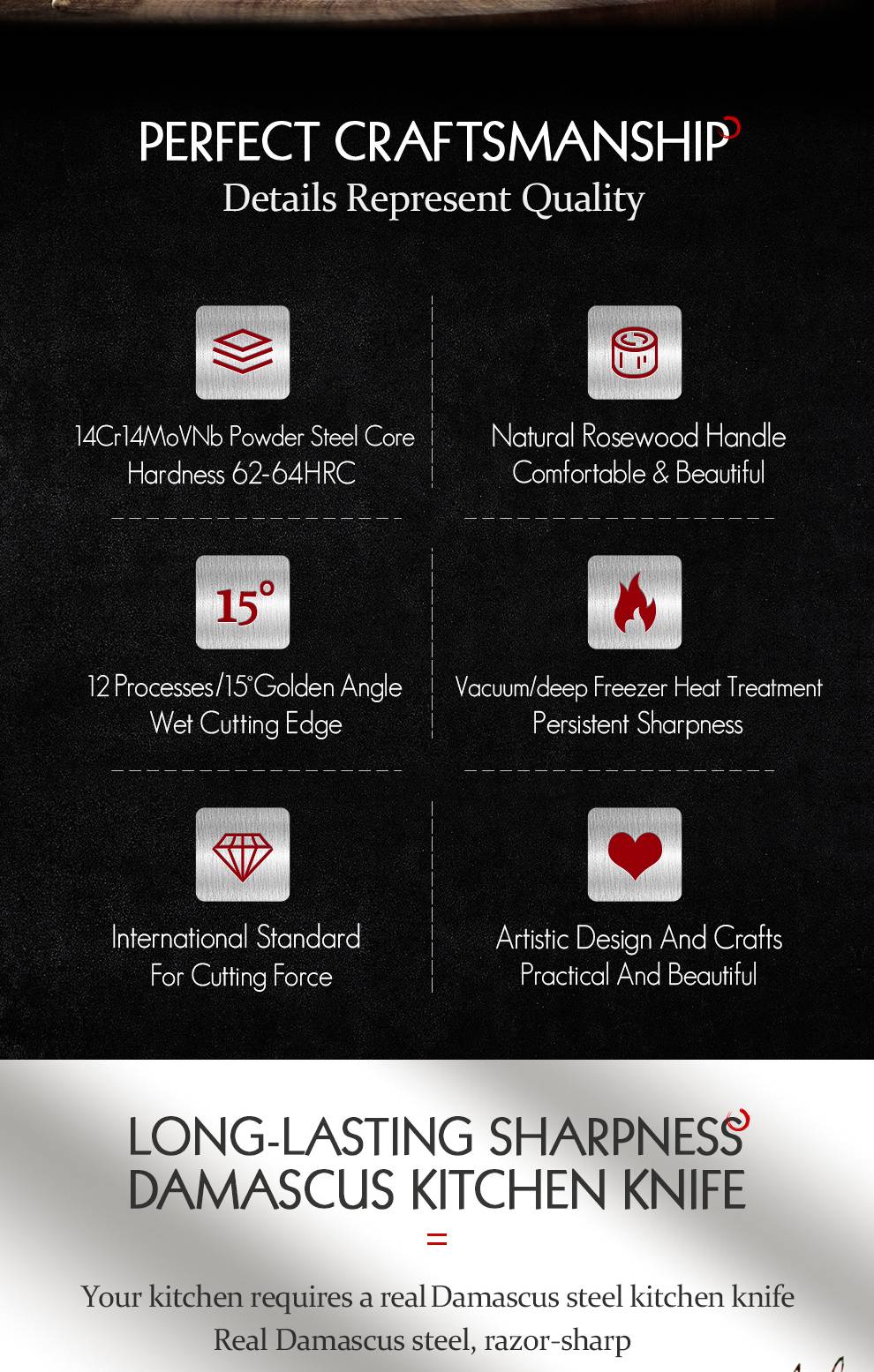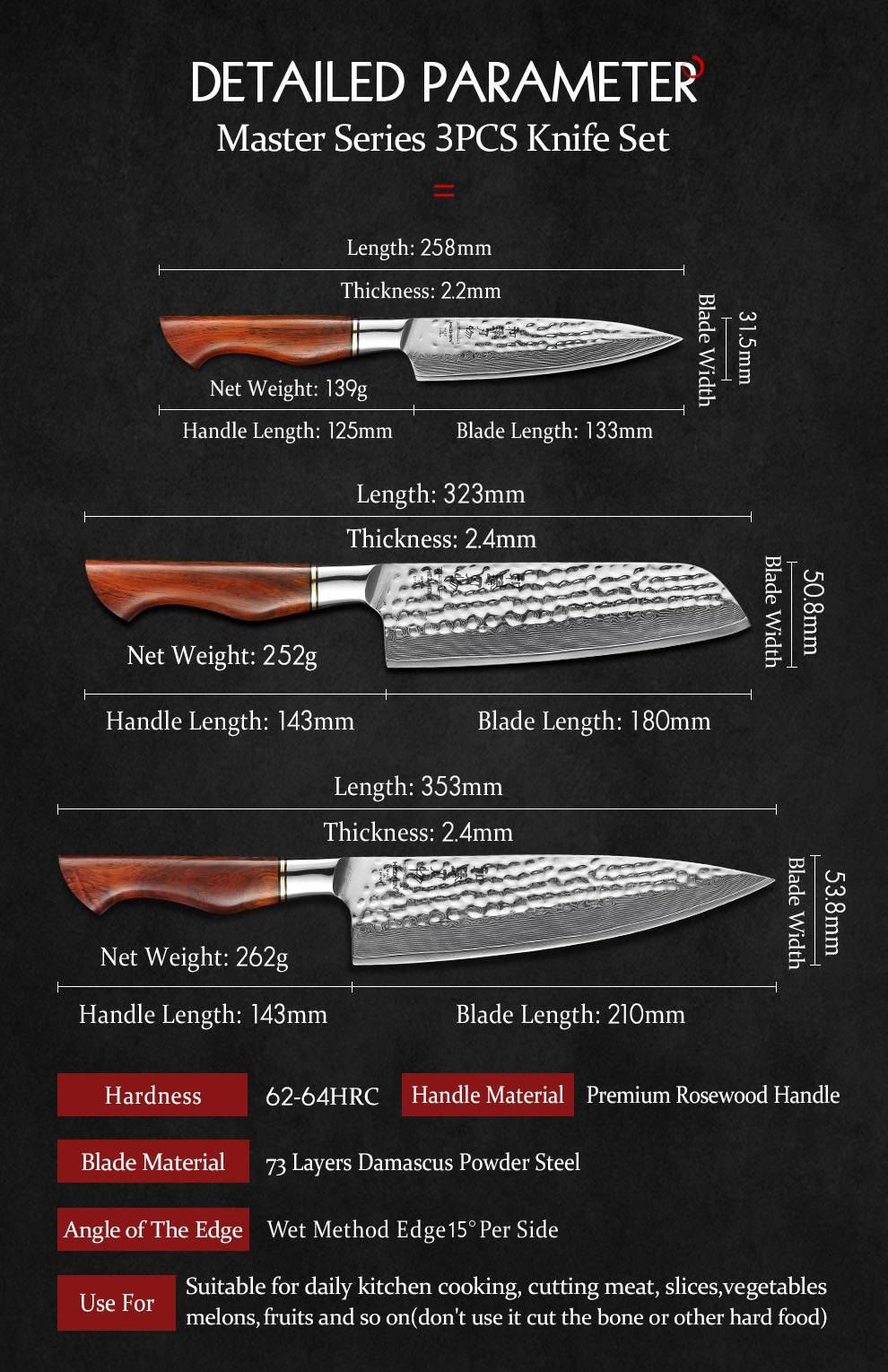 Материал лезвия:73 слоя порошка Дамасская супер сталь