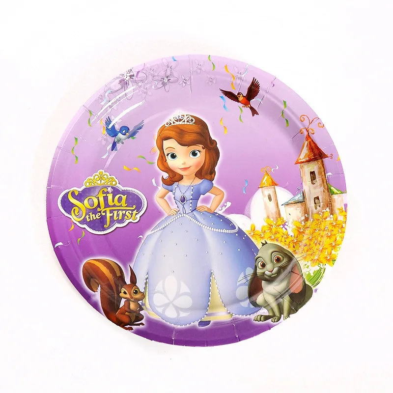 Дисней Принцесса София принцесса вечерние украшения одноразовая посуда бумажный стаканчик соломенный поднос салфетка для детского душа подарок на день рождения