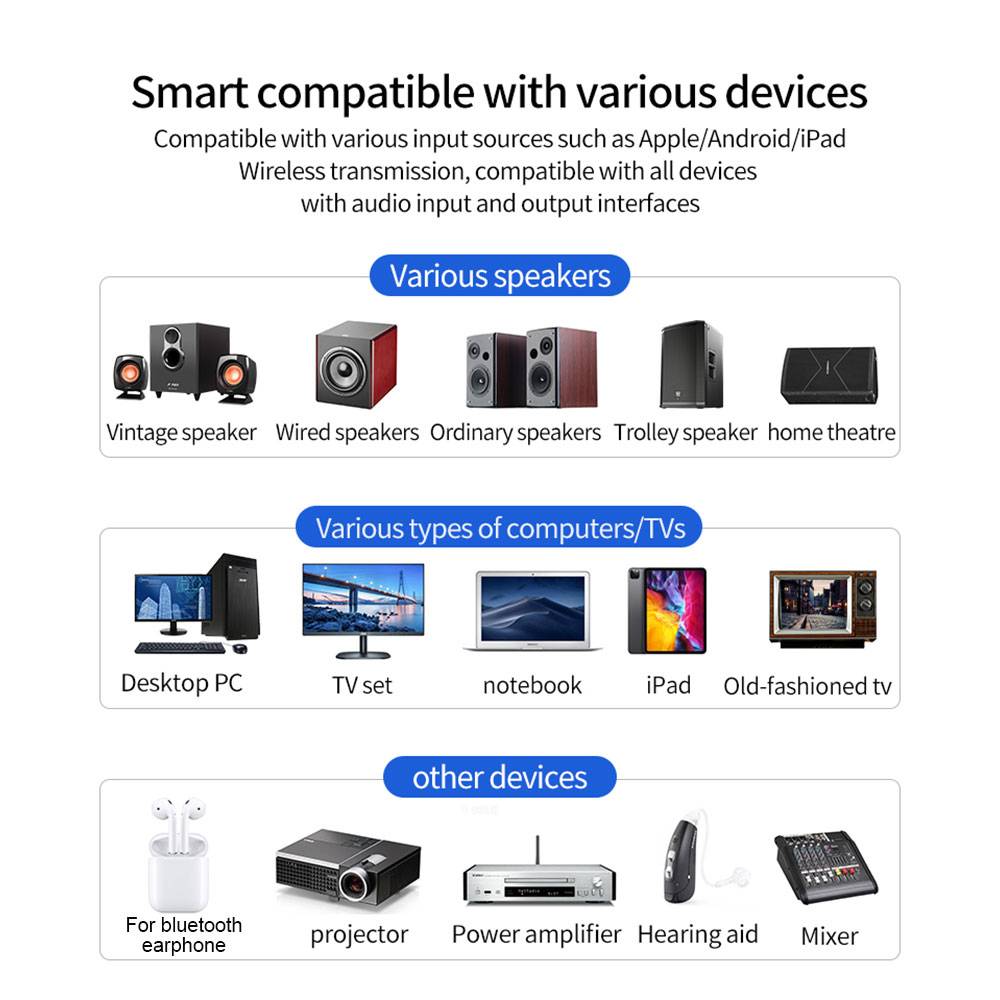 Совместимые устройства: Для Android, для мобильных телефонов и планшетов с системой IOS, активные колонки, усилители мощности и bluetooth-колонки или наушники, поддерживающие A2DP/протокол, подключены для использования