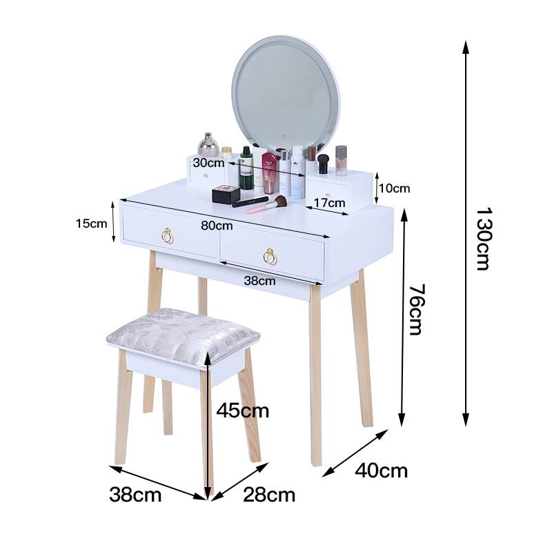 4. Туалетный столик поддерживается высококачественным МДФ (уровень E1) и твердыми деревянными ножками, которые очень устойчивы и элегантны;