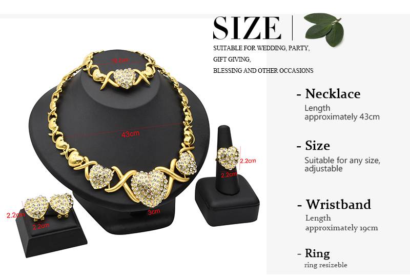 Xoxo золотого цвета Ювелирные наборы Сердце Ожерелье Африканские свадебные серьги браслет кольцо индийские нигерийские роскошные свадебные трендовые ювелирные изделия