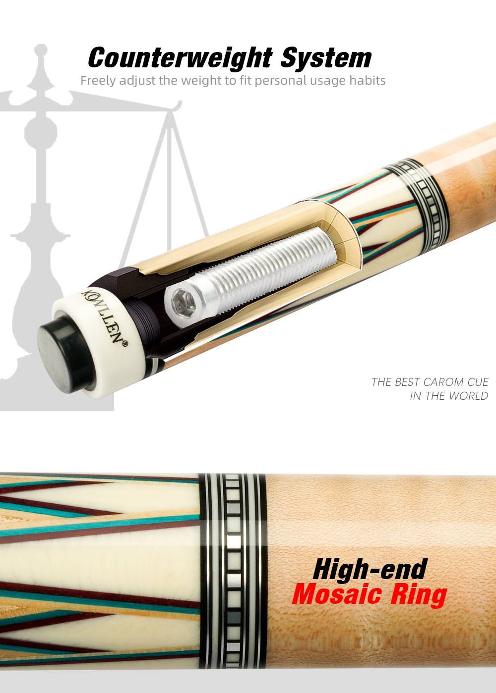KONLLEN 3 подушки карамболь кий реальные инкрустация низкая отклонение палка Технология бильярдный кий (12 штук в пакете 1 вал, 142 см, 12-12,2 мм наконечник, радиальный, шарнирное соединение, регулируемый Вес, карамболь Профессиональный конус)