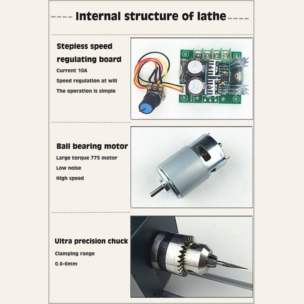90-120 Вт мини металлический токарный станок 200 мм трехкулачковый деревообрабатывающий токарный станок небольшой плавной переменной скорости бесщеточный двигатель 220 В ЕС