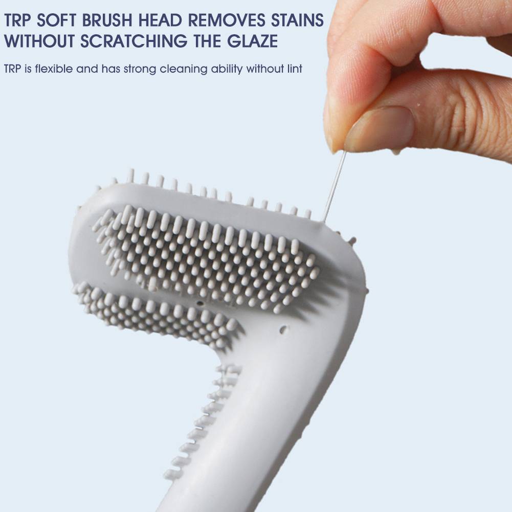 * 2. Гибкая треугольная кисть-головка глубоко погружается в пазы, чтобы тщательно очистить туалет, не оставляя мертвых углов.