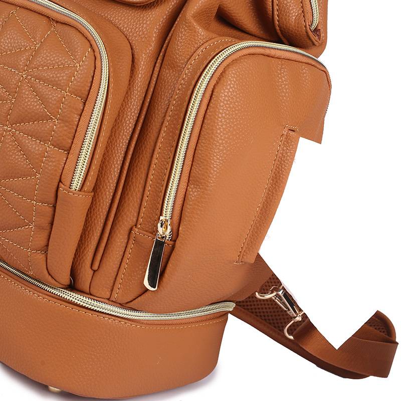 Есть в общей сложности 10 карманов, 4 внешних кармана, две теплоизоляционные сумки внутри, один карман на молнии внутри, один внутренний карман компьютера, два кармана на молнии и два эластичных кармана. Бесплатный косметический мешок, теплее мешок, пеленки pad и передвижной крючок