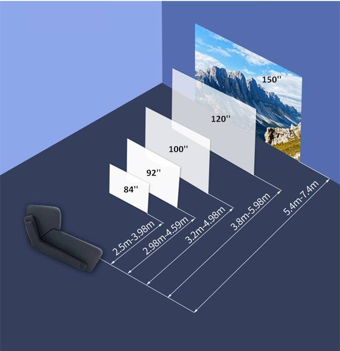 Как правильно выбрать размер экранаПрежде чем выбрать лучший размер экрана, необходимо учитывать четыре основных фактора:1. Размеры проекционной стены2. Расстояние проекции3. Яркость проектора (люмен)4. Расстояние обзораЯркость проектора/размер экрана * 2 = индекс яркости устройстваНапример: XGIMI H1S ( 1100 ansi) 100 дюймов1100/100/100 = 0,11