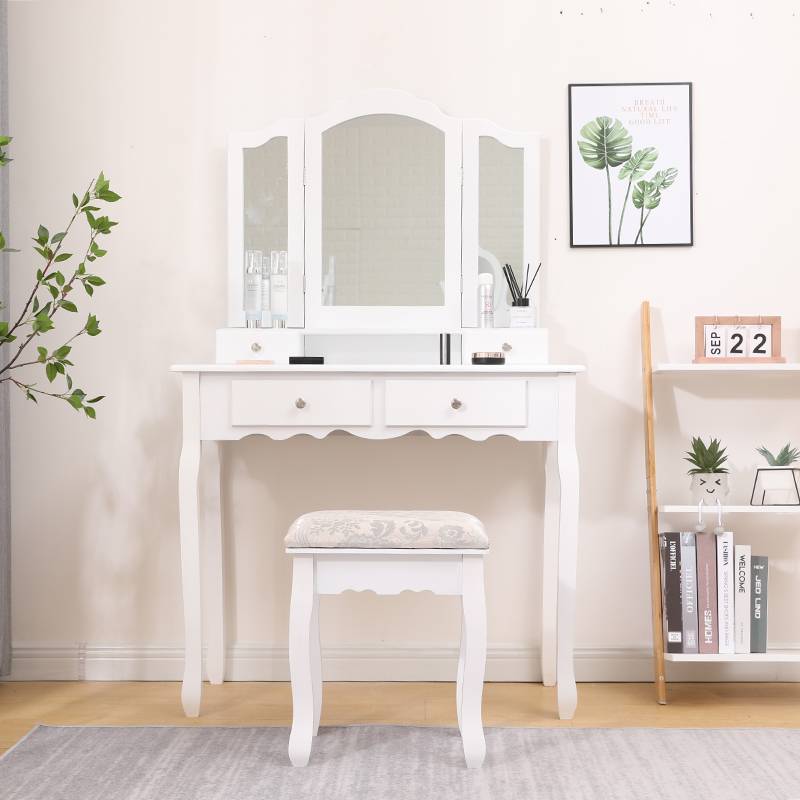 Название продукта: туалетный столик в европейском стиле с табуретом и трехслойным зеркалом (3 зеркала, 4 ящика)