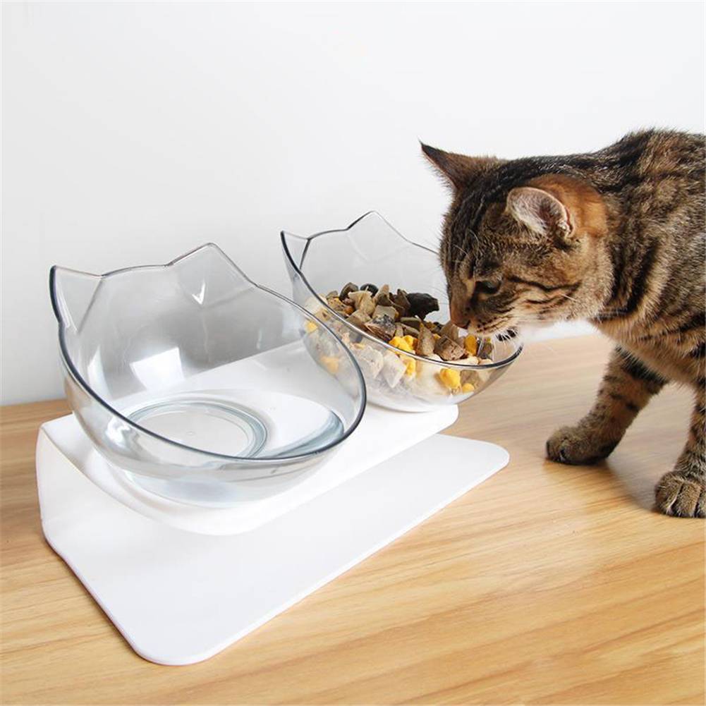 Двойные миски для кошек, прозрачные, для собак, домашних животных, нескользящая, поднятая подставка, для одной воды, питатель для щенков, повышенная подача пищи, блюдо, принадлежности для котенка