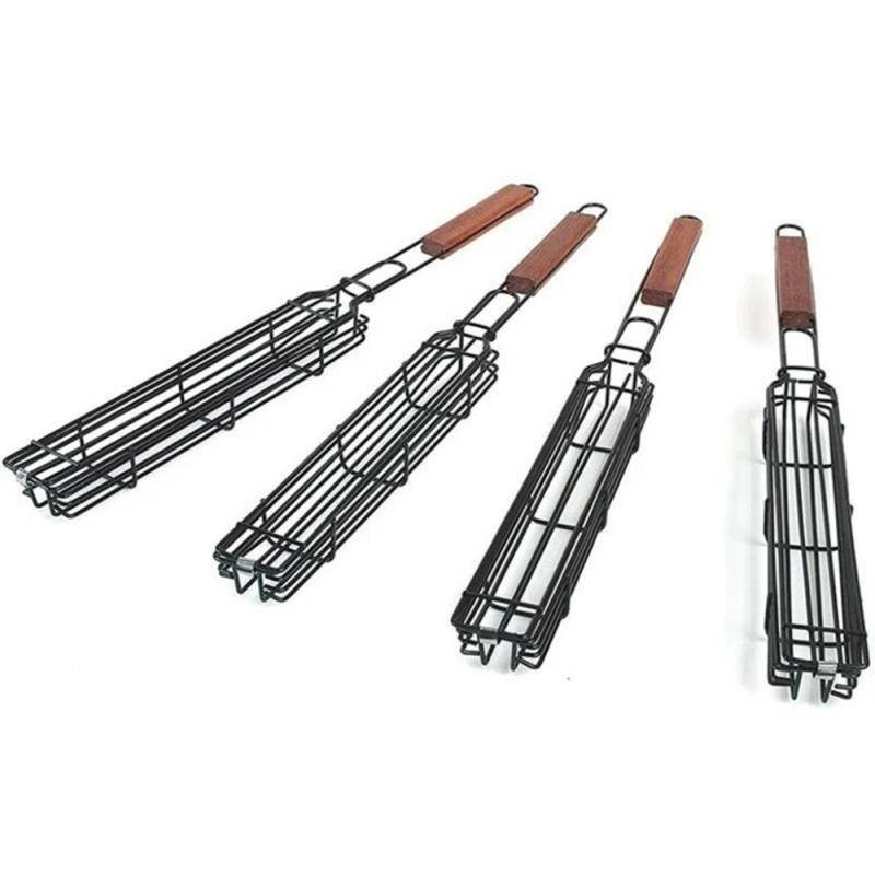 1 шт. портативная корзина для барбекю Kabob из нержавеющей стали многоразовая прочная Антикоррозийная деревянная ручка инструмент для барбекю Гриль Корзина сетка для гриля