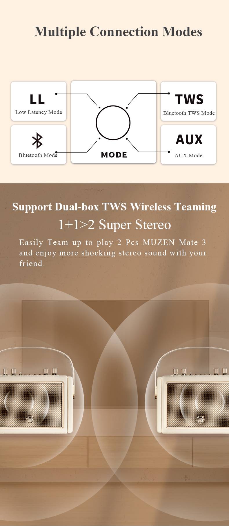 MUZEN Mate3 профессиональный стерео Bluetooth динамик открытый IPX4 водонепроницаемый беспроводной динамик многонаправленный звуковой полевой сабвуфер