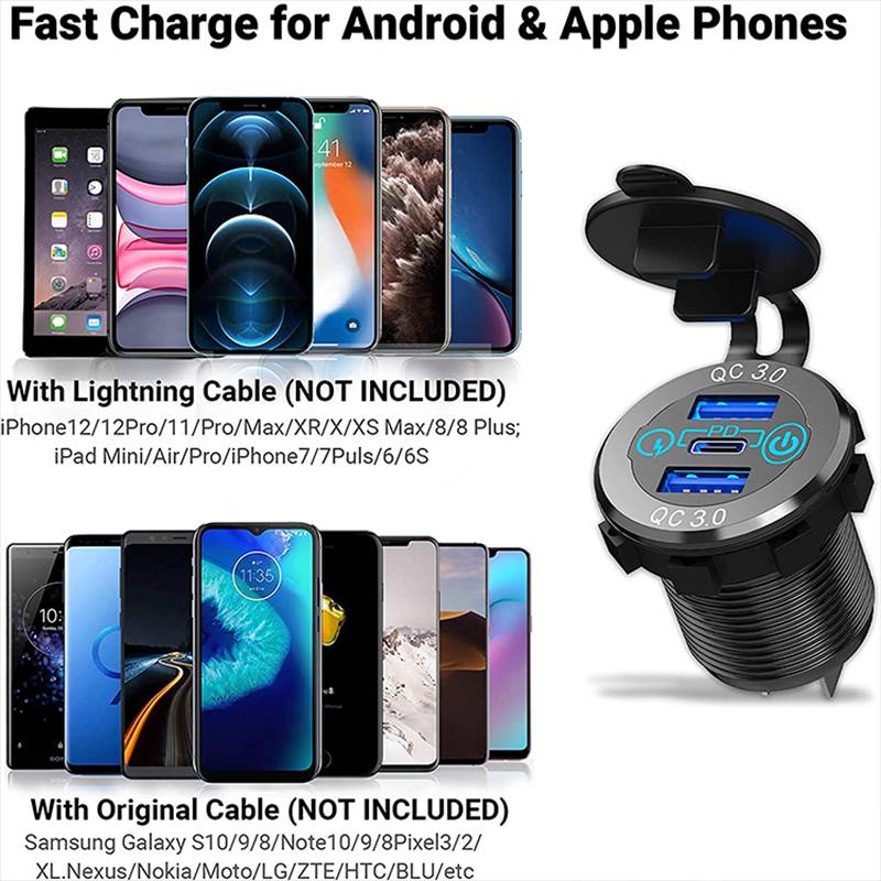 • Двойной USB-C QC3.0 + PD
