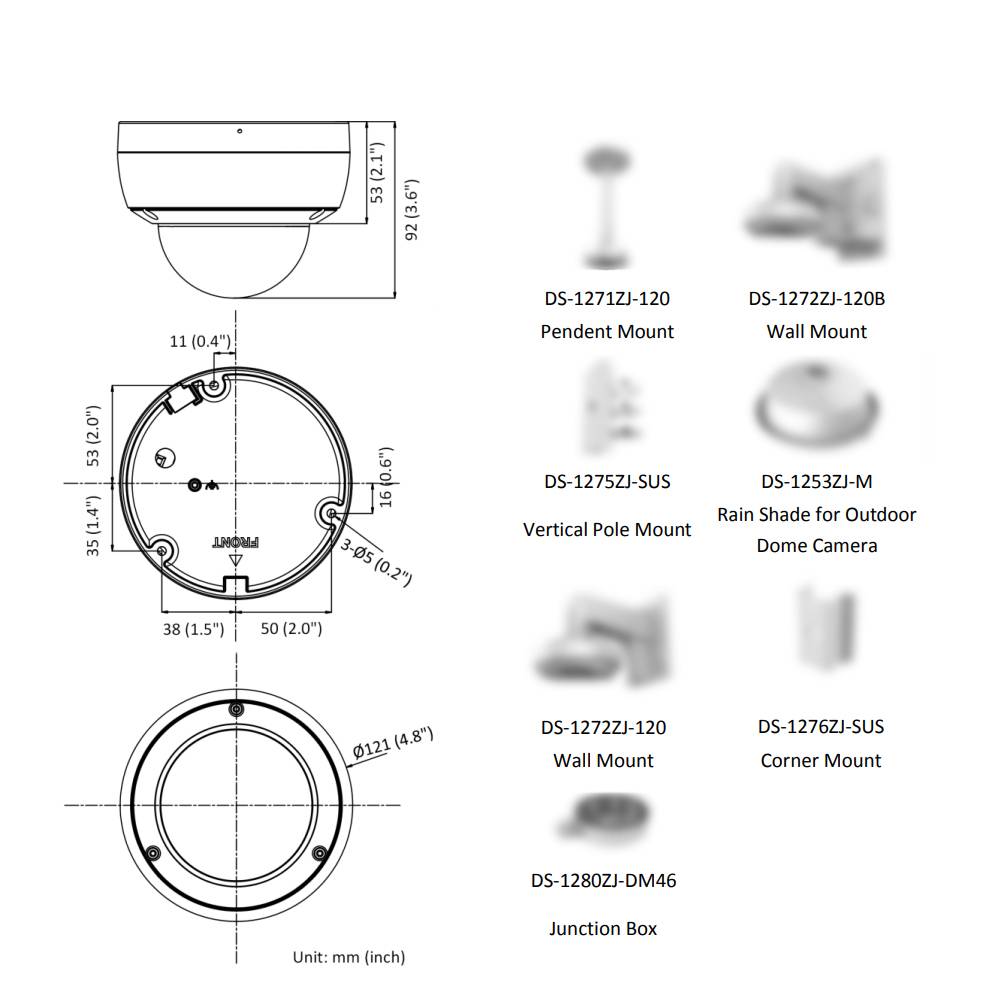 Фокусное расстояние и угол обзора: 2,8 мм, горизонтальный угол обзора 103, вертикальный угол обзора 55, Диагональный угол обзора 123;4 мм, горизонтальный угол обзора 83, вертикальный угол обзора 45, Диагональный угол обзора 98;6 мм, горизонтальный угол обзора 53, вертикальный угол обзора 28, Диагональный угол обзора 62