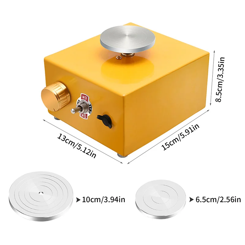 3. С широким спектром применения: две вертушки, Диаметр: 6,5 см/2.56in и высотка каблука 10 см/3.94in, этот небольшой Профессиональные керамические колесо машина специально подходит для школьного обучения и гончарные изделия Сделай Сам магазин, для удовлетворения потребностей профессионалов и любителей керамики. Эта машина подходит для керамического бросания и формирования керамики, обучения керамике и развлечений.