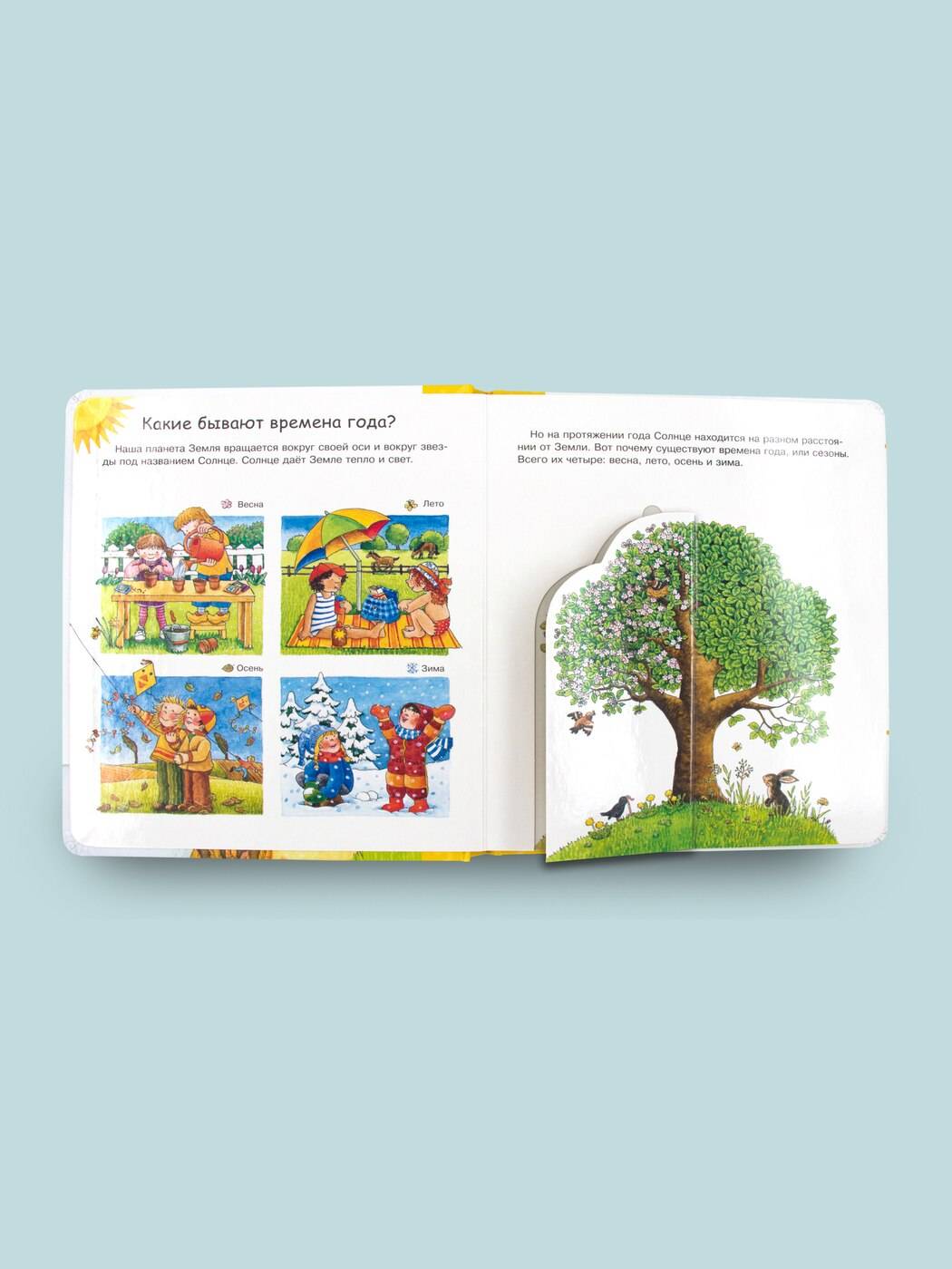 На каждом книжном развороте внимание любознательного малыша привлекут красочные иллюстрации и волшебные окошки с интересными сюжетами о лете, осени, зиме и весне.