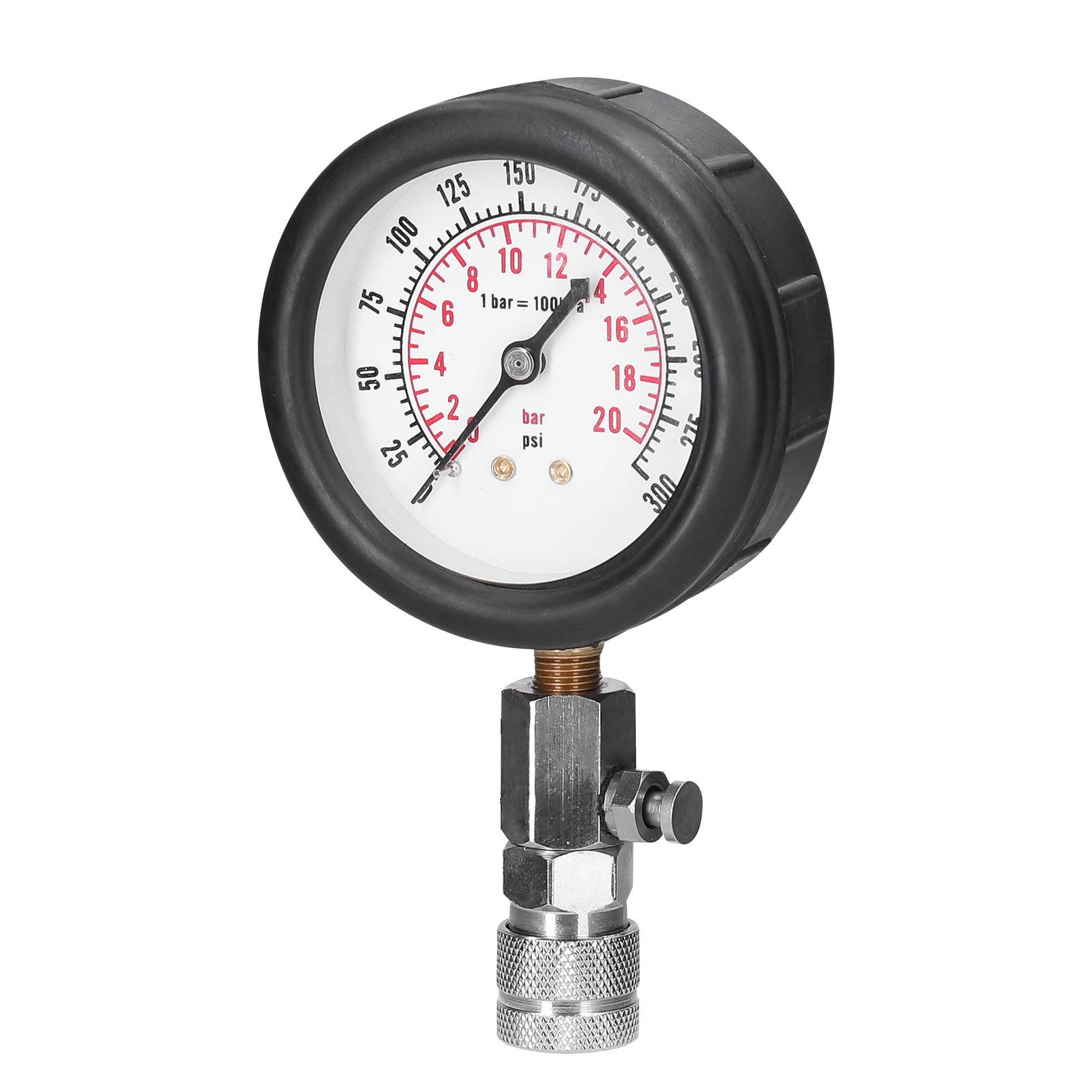 Это набор качественных газовых баллонов для измерения сжатия, включает в себя датчик воздуха, три соединительных трубы, две тестовые трубы, 5 сменных адаптеров. Изготовлен из коррозионно-стойкого металла, не изнашивается и не ржавеет с течением времени, удобная запасная часть для использования. Шланг имеет качественный резиновый материал, высокое сопротивление давлению и надежность. Поставляется с манометром для удобного просмотра во время использования, который имеет две шкалы показаний 0-20 бар и 0-300 PSI для удобства. Подходит только для газовых баллонов (автомобиль или мотоцикл). Вы можете попробовать.
