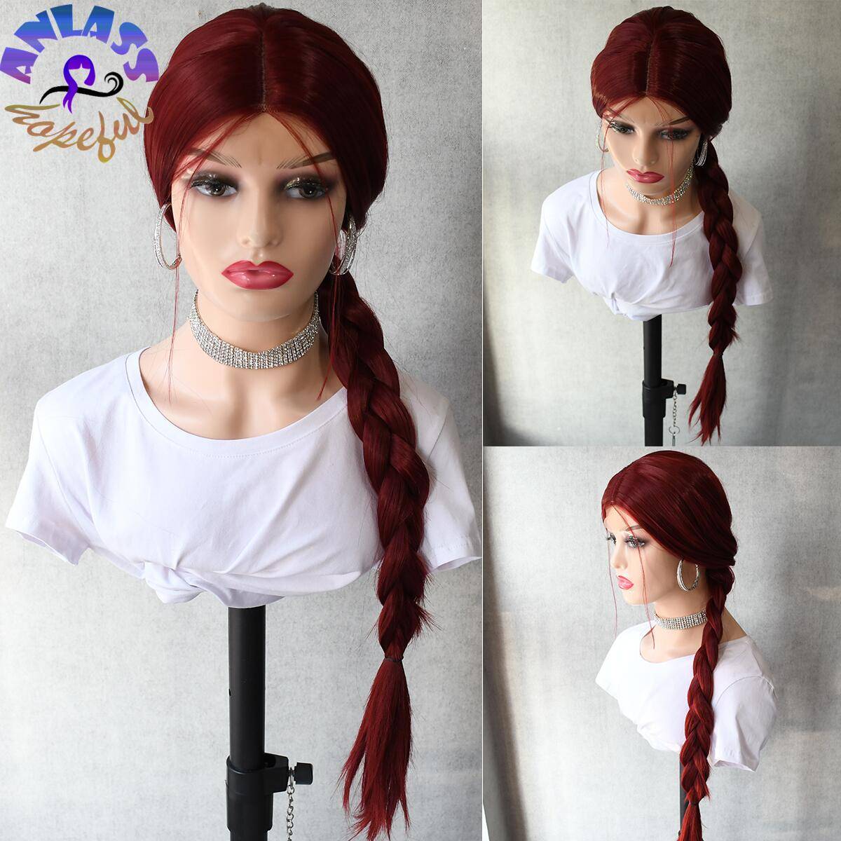Длинный прямой винно-красный парик из синтетических волос термостойкий парик натуральный косплей парик для женщин средняя часть серый синий парик