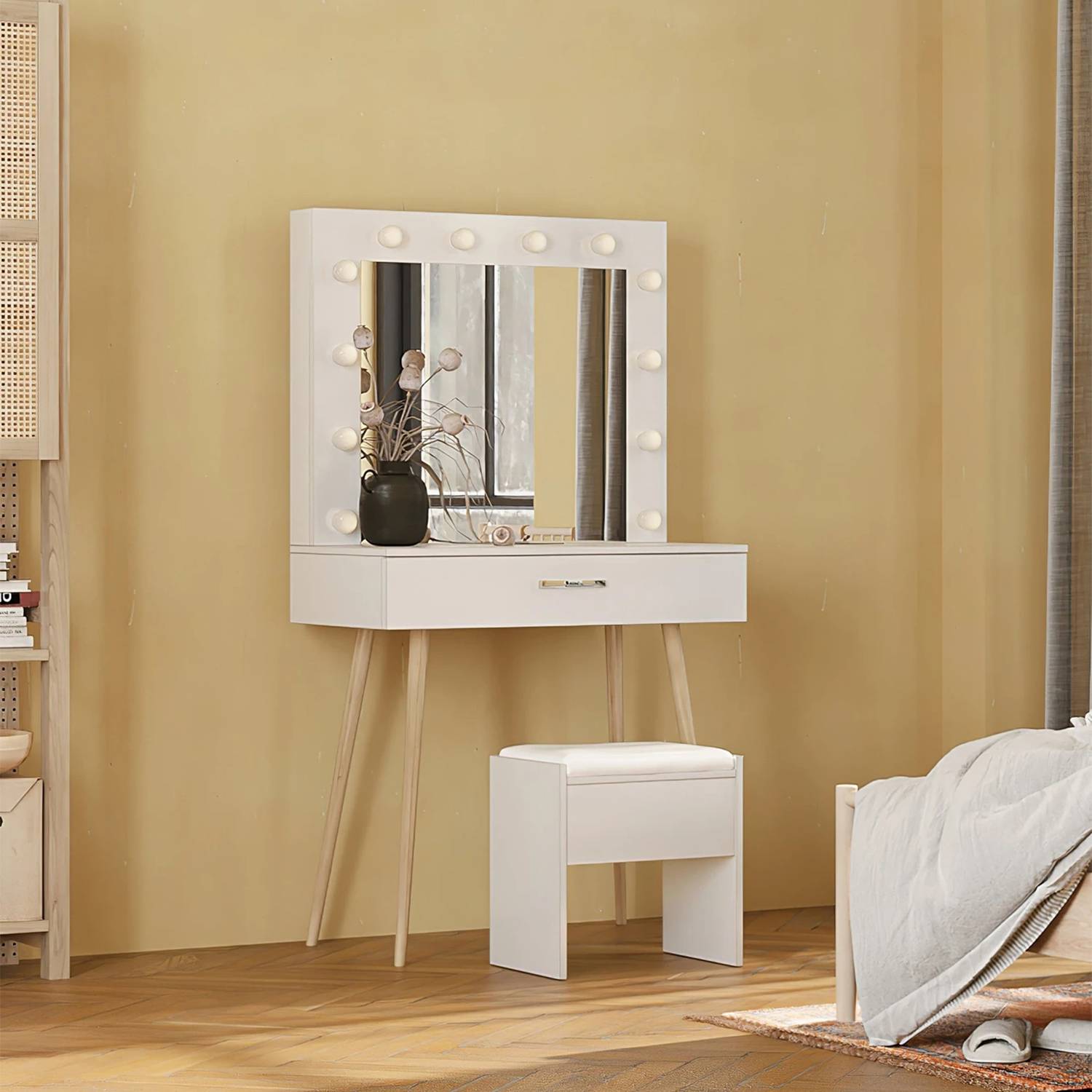 Большой туалетный столик с 12 светильник туалетный столик с мягким табуретом для женщин, девушек